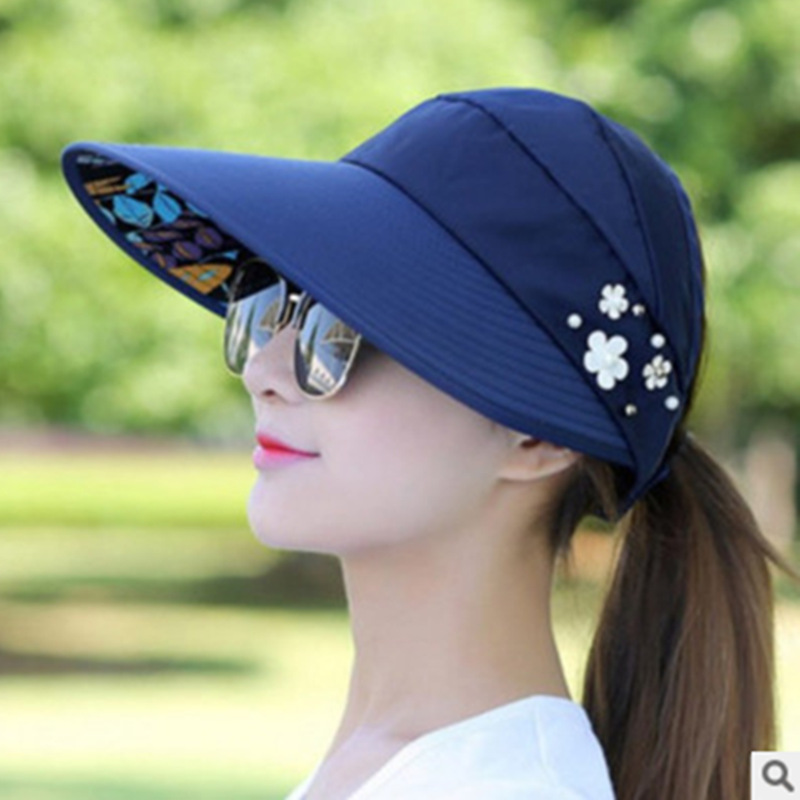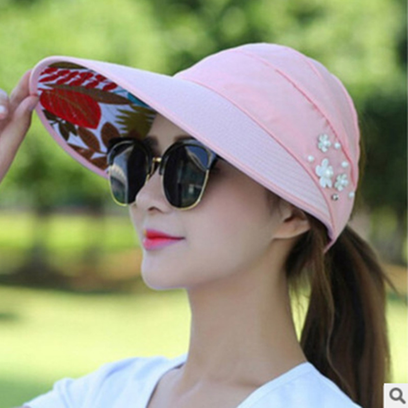 진주 모자 새로운 태양 모자 남성과 여성의 빈 모자 그물 빨간 쉘 모자 UV 보호 야외 대형 브림 자외선 차단제 모자