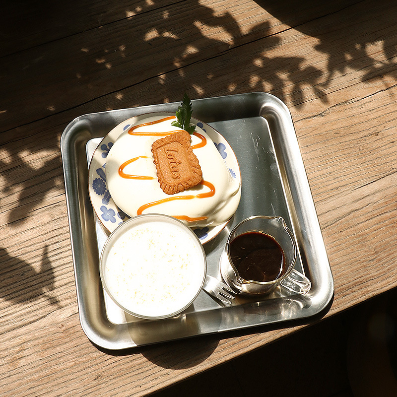 금속 디너 플레이트 스테인레스 스틸 케이크 디저트 직사각형 오후 티 트레이 카페스토어 가기