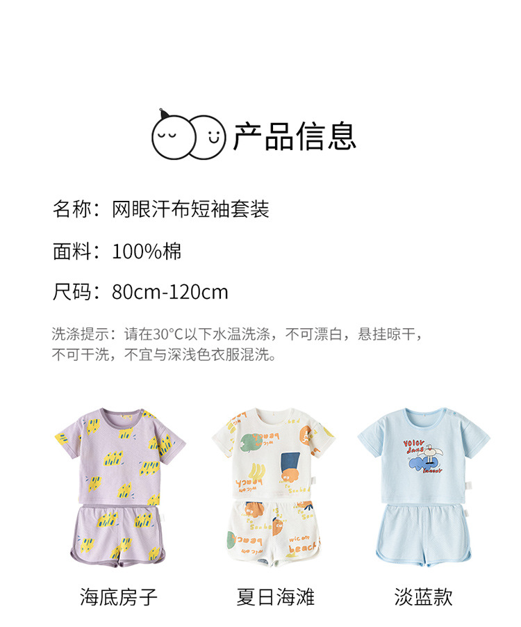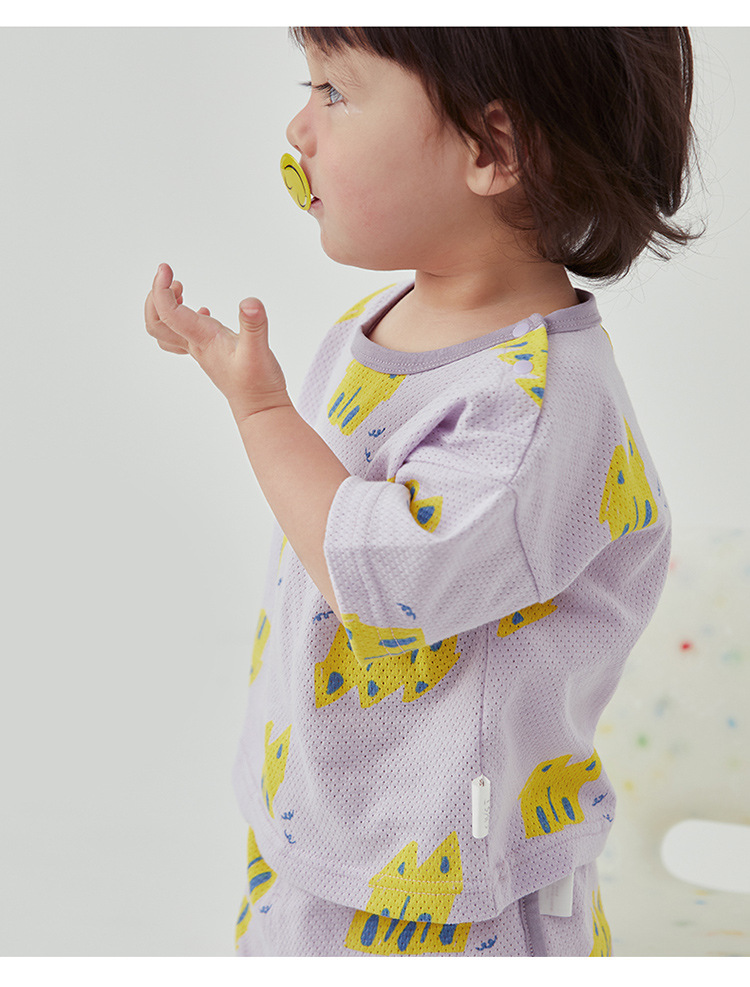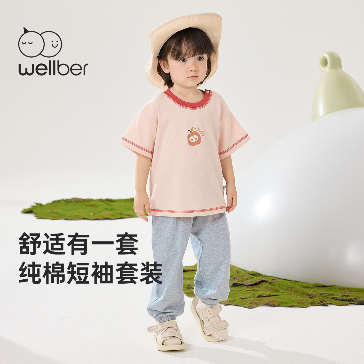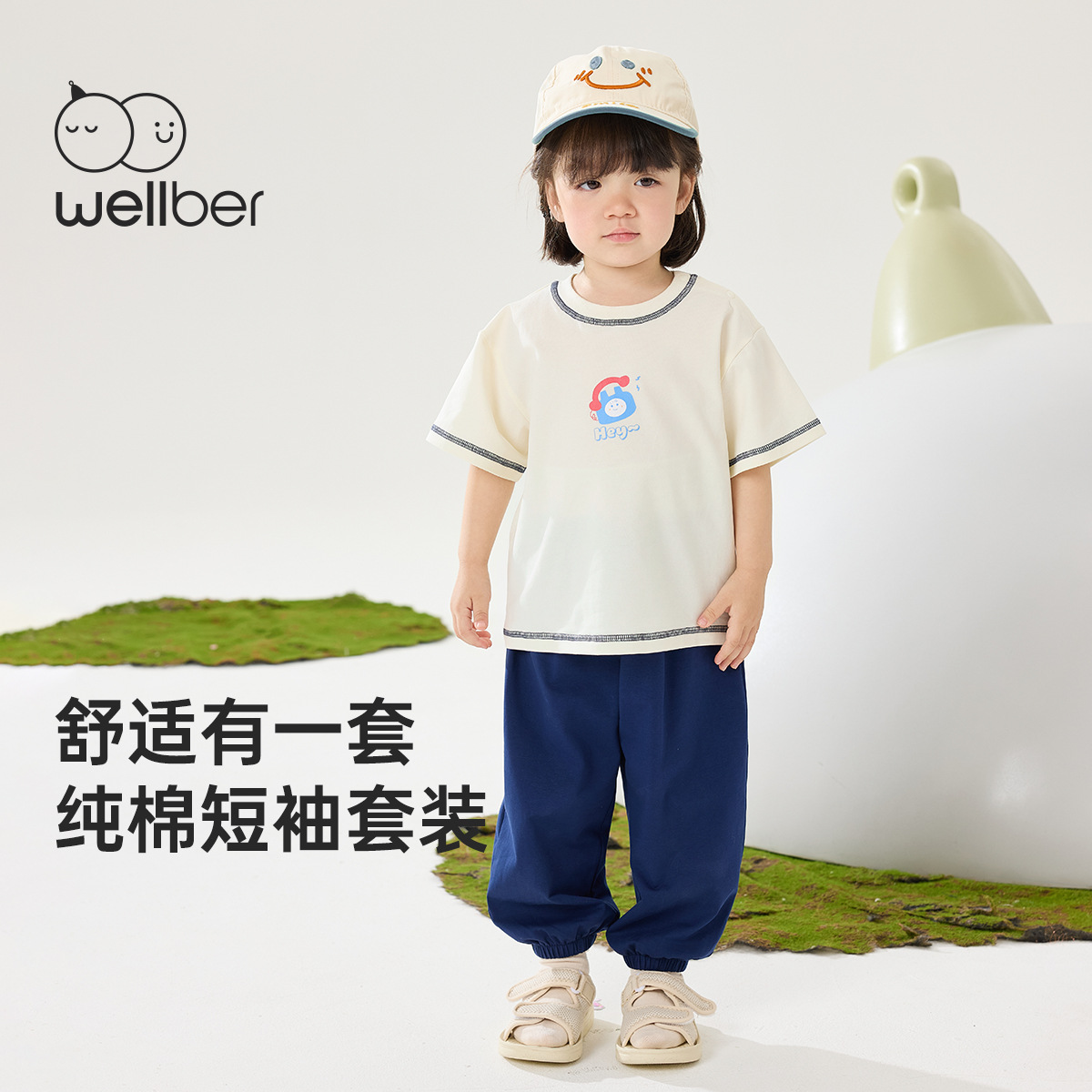 [클리어아웃] 윌베루 여름 반팔 정장 남녀공용 아기옷, 얇은 면 소재의 유아 및 아동용 투피스 세트스토어 가기