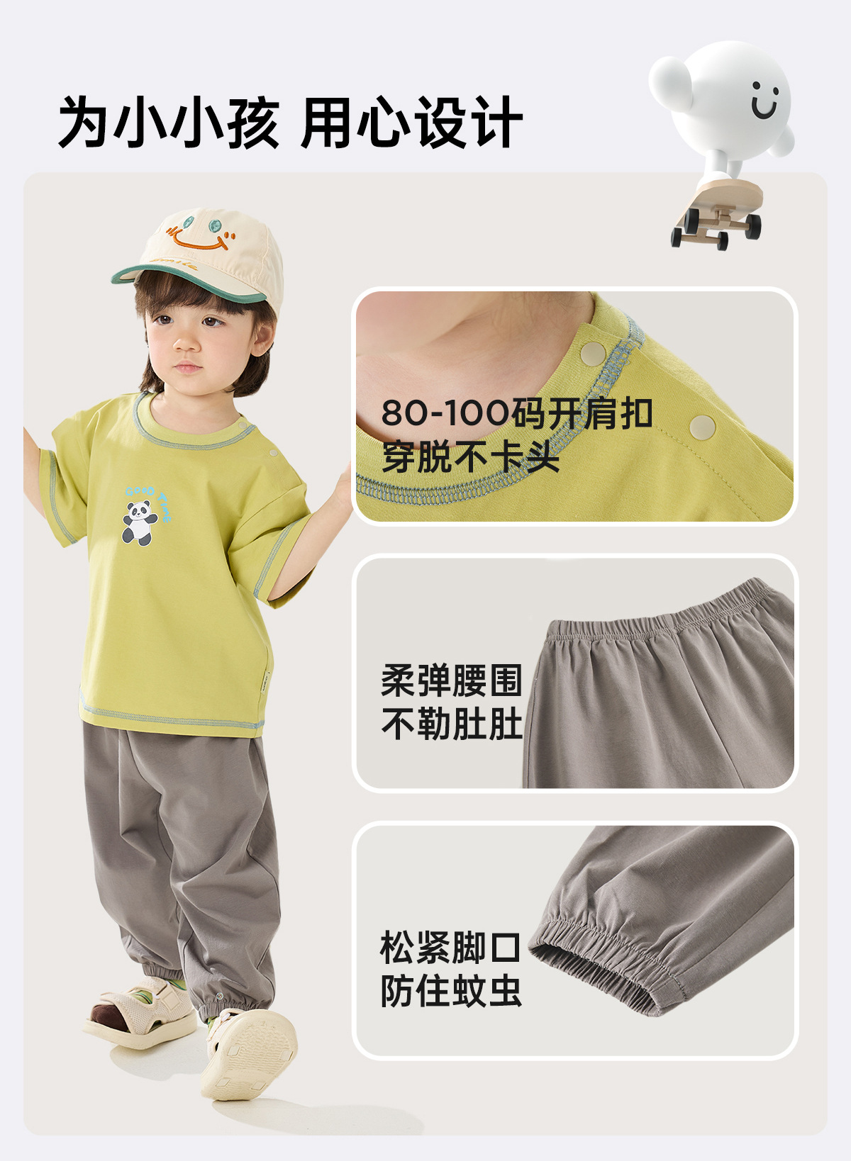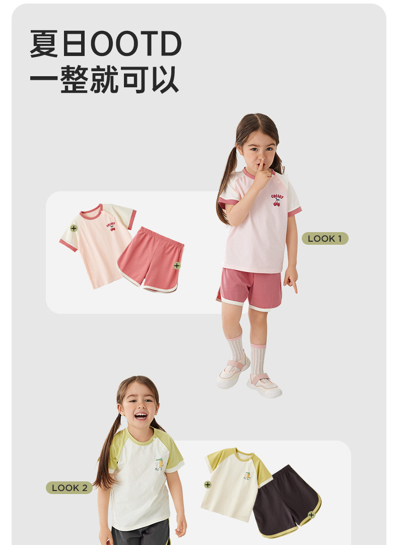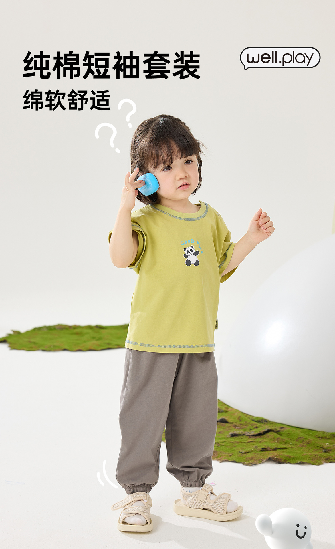 [클리어아웃] 윌베루 여름 반팔 정장 남녀공용 아기옷, 얇은 면 소재의 유아 및 아동용 투피스 세트스토어 가기