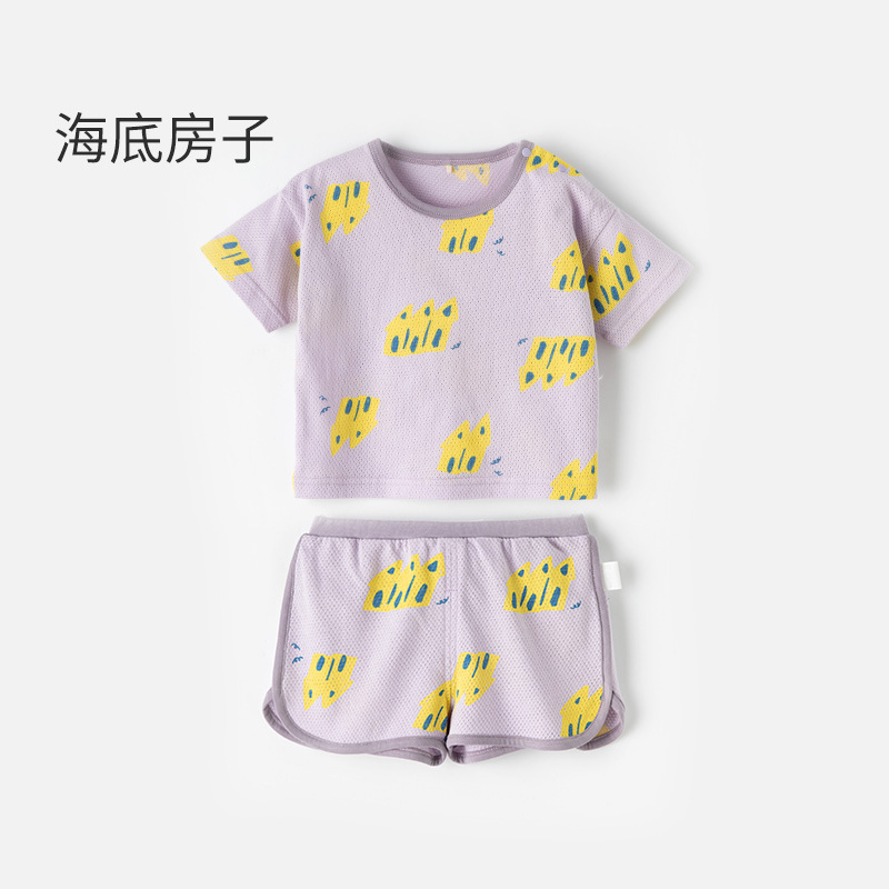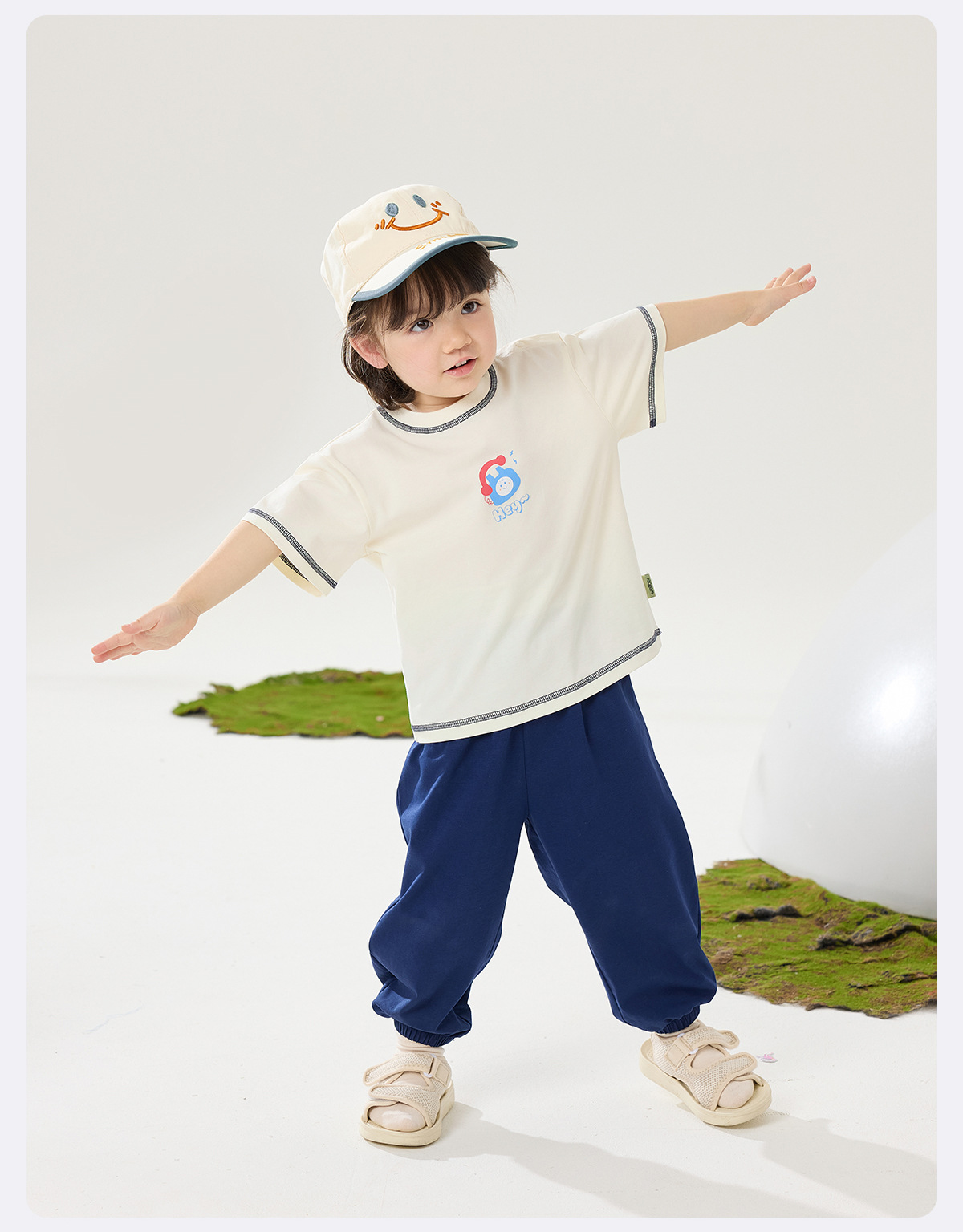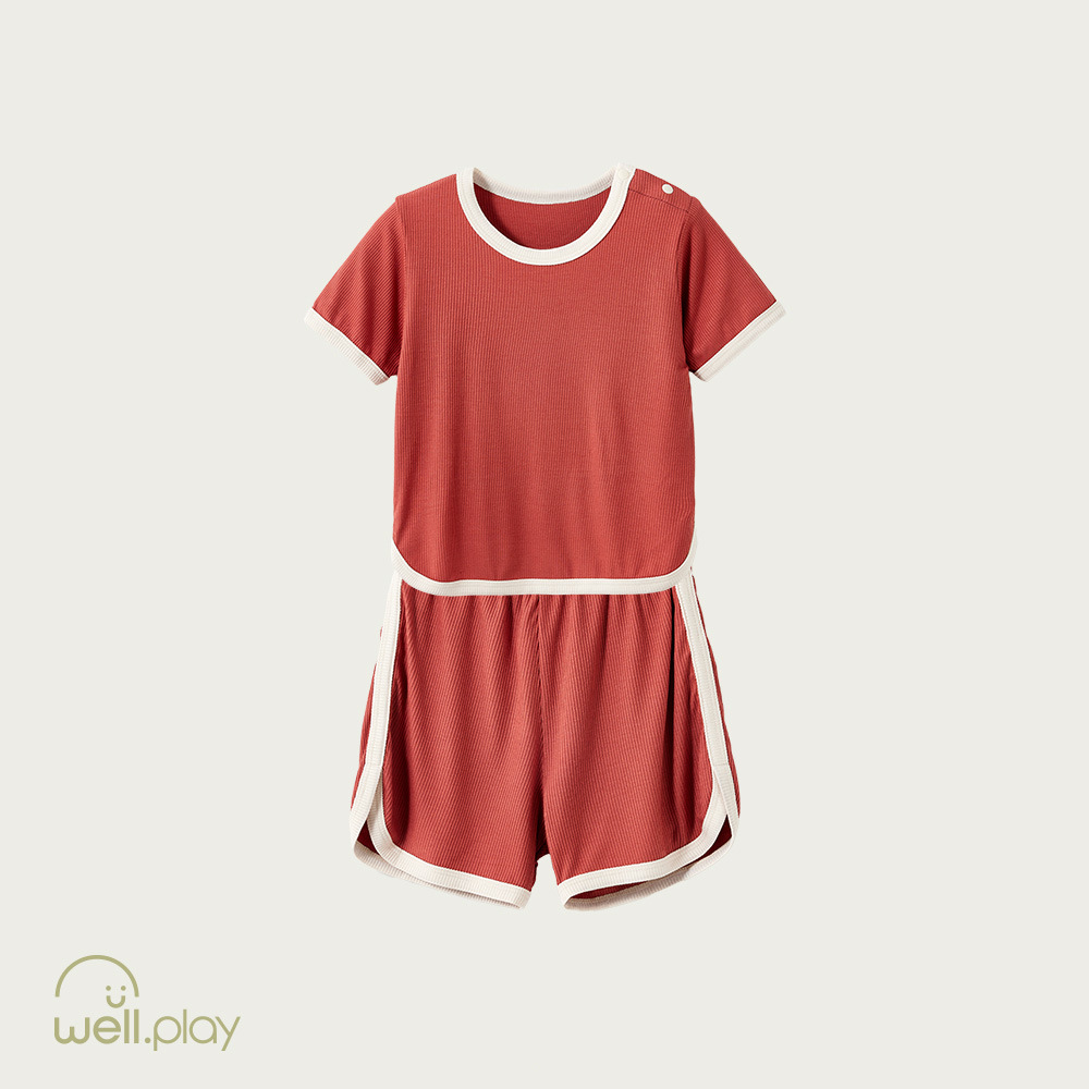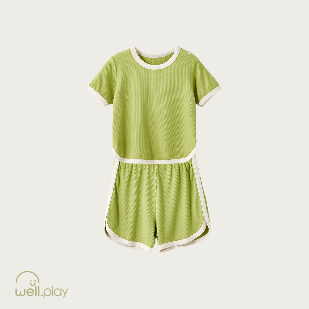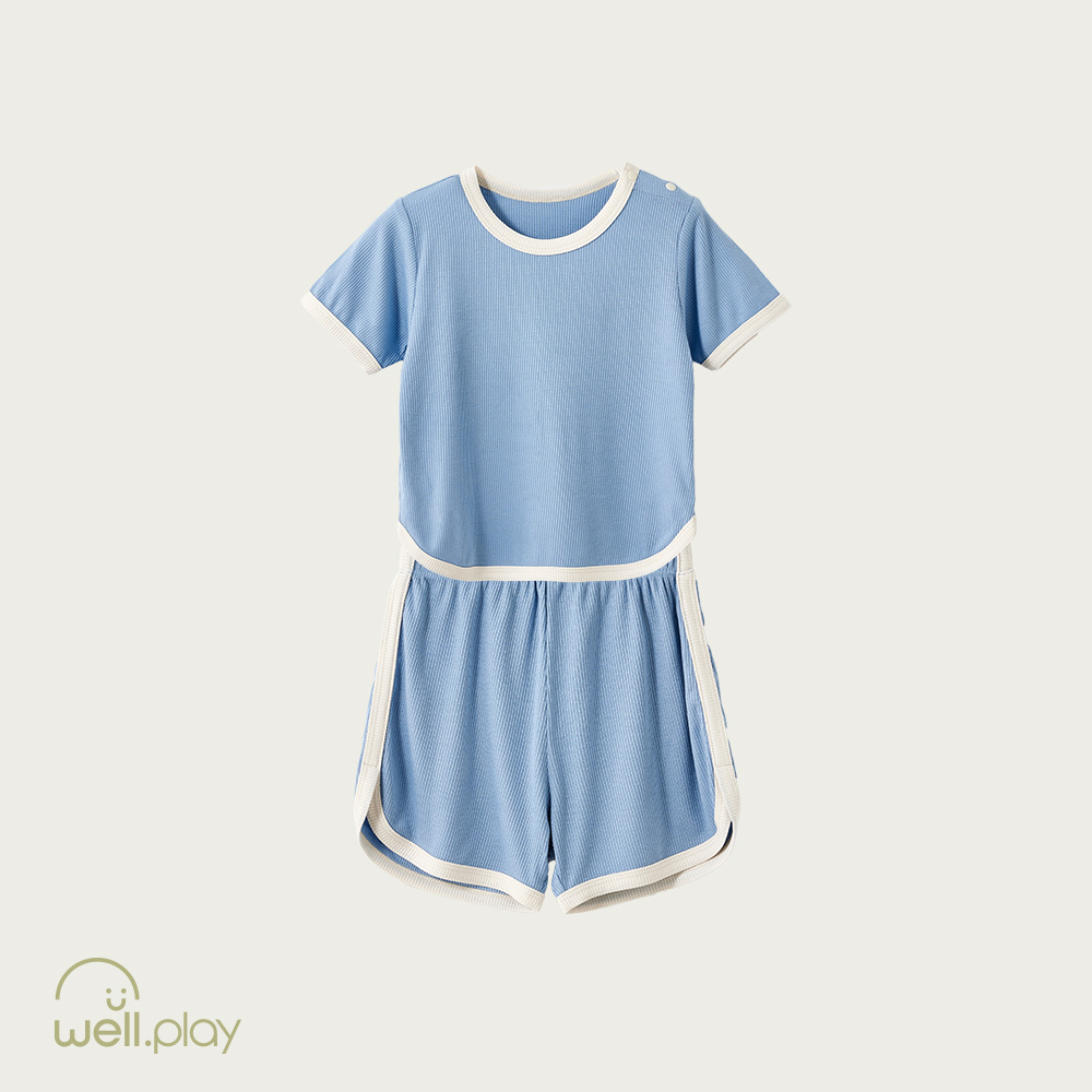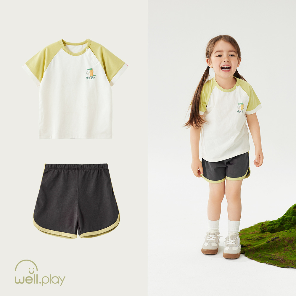 [클리어아웃] 윌베루 여름 반팔 정장 남녀공용 아기옷, 얇은 면 소재의 유아 및 아동용 투피스 세트
