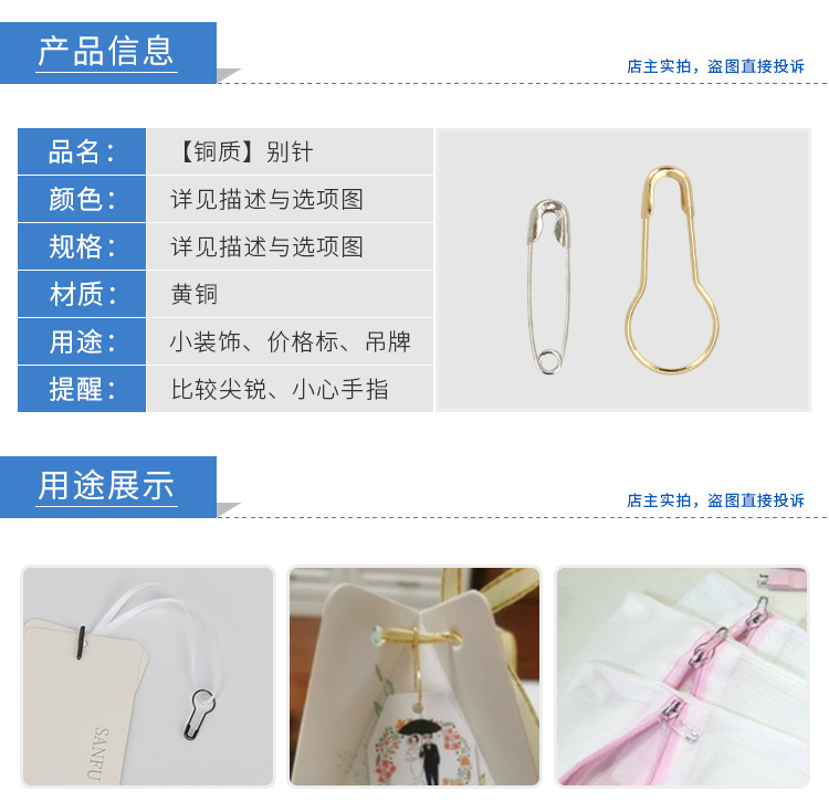 크로스 국경 도매 순수 구리 핀 골드 블랙 실버 핀 조롱박 모양의 안전 핀 의류 액세서리스토어 가기