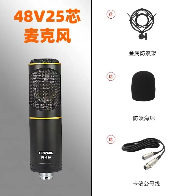 콘덴서 마이크 앵커 라이브 방송 장비 사운드 카드 48V 대형 다이어프램 녹음 마이크 데스크탑 마이크