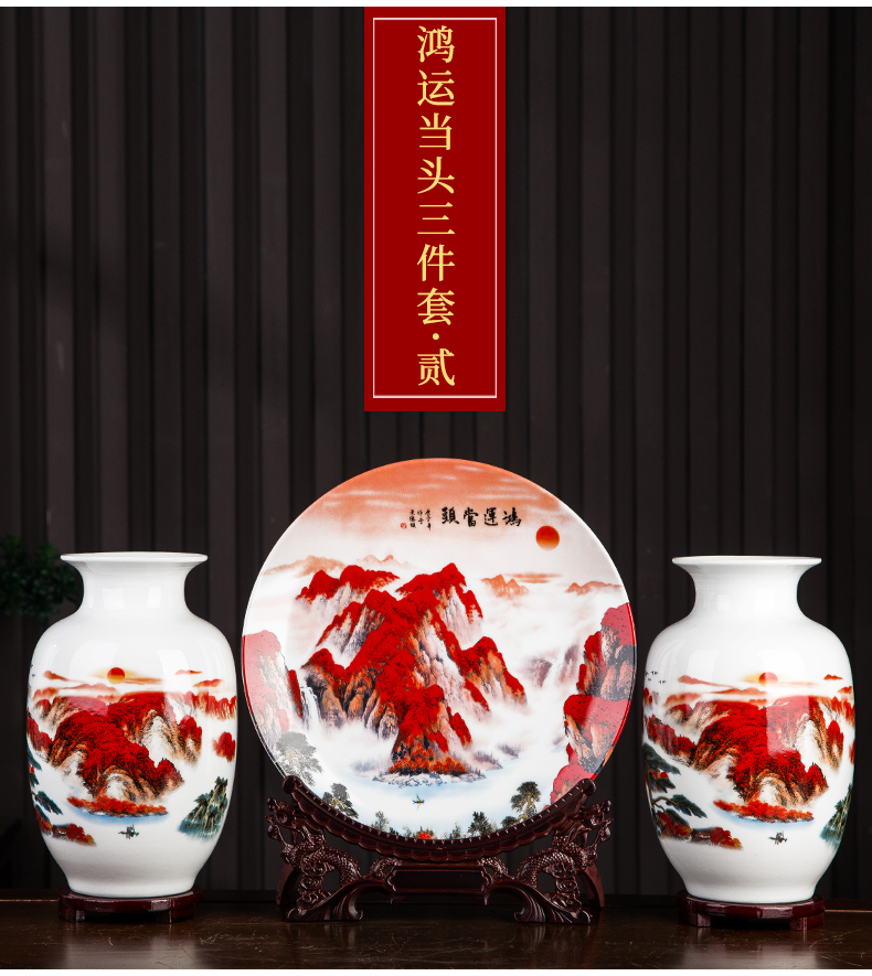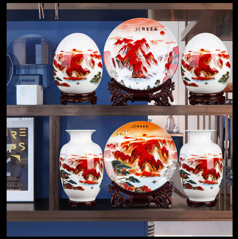 Jingdezhen 세라믹 새로운 중국식 3 피스 꽃병 장식품 거실 데스크탑 TV 캐비닛 사무실 입구 장식