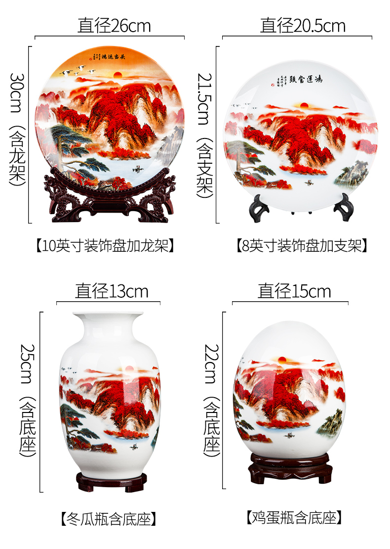Jingdezhen 세라믹 새로운 중국식 3 피스 꽃병 장식품 거실 데스크탑 TV 캐비닛 사무실 입구 장식스토어 가기