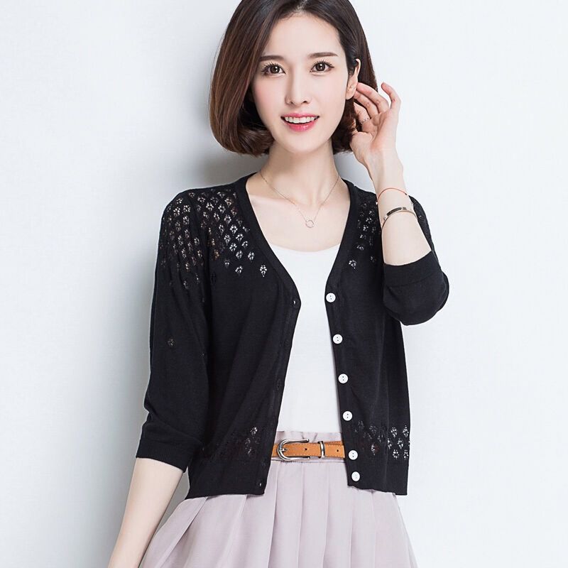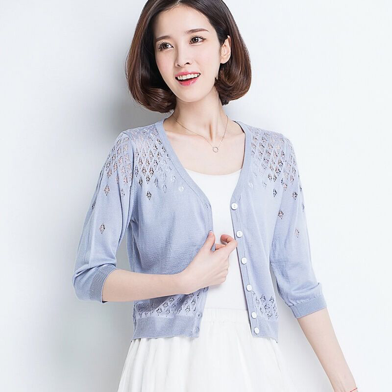 자외선 차단제 카디건 슬링 내부 얇은 니트 가디건 여성용 중공 한국식 짧은 자외선 차단제 만능 아이스 실크 재킷