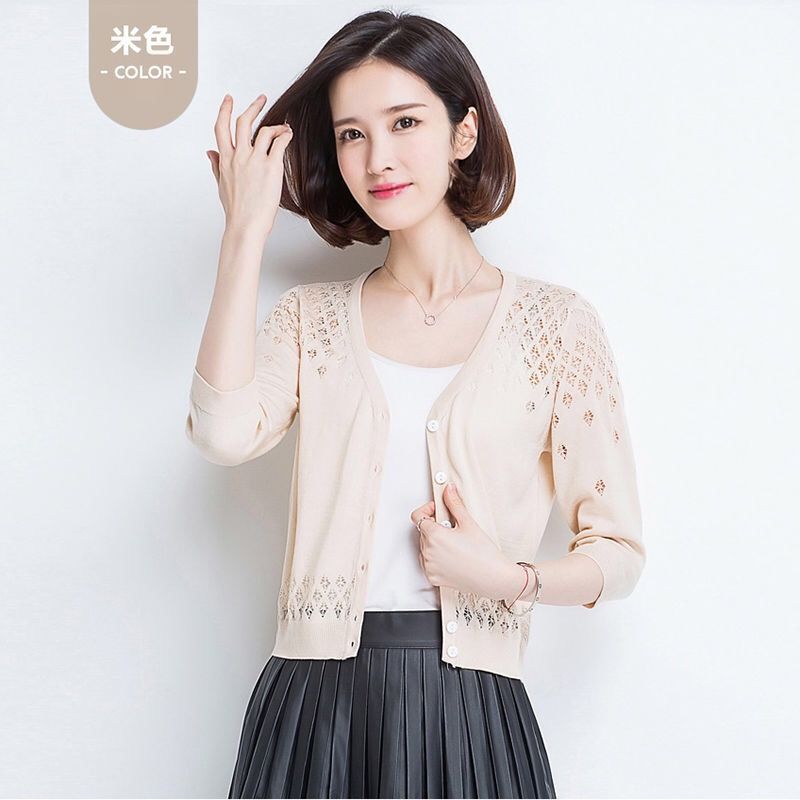 자외선 차단제 카디건 슬링 내부 얇은 니트 가디건 여성용 중공 한국식 짧은 자외선 차단제 만능 아이스 실크 재킷스토어 가기