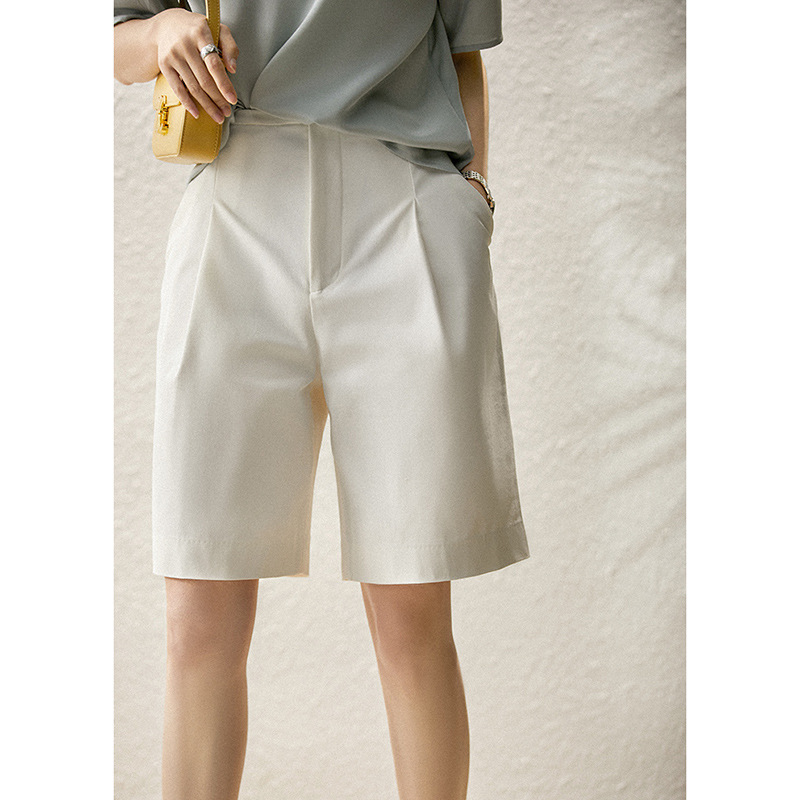 2026년 여름 신상 일본 스타일 여성용 수트 팬츠, 질감 있는 자외선 차단 슬리밍 핫팬츠, 4부 캐주얼 팬츠스토어 가기