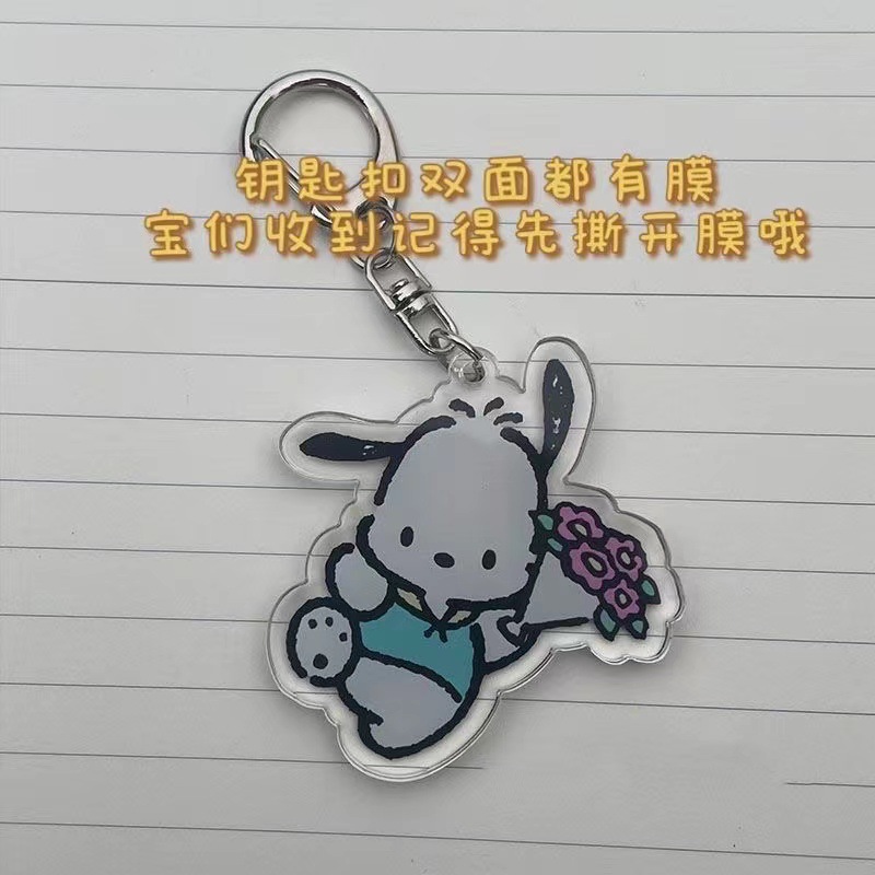 작은 빨간 책 Pacha 개 펜던트 아크릴 열쇠 고리 학교 가방 더블 마스크 교수형 액세서리 커플의 가장 친한 친구 열쇠 고리스토어 가기