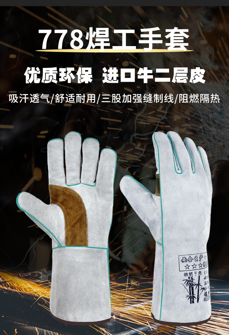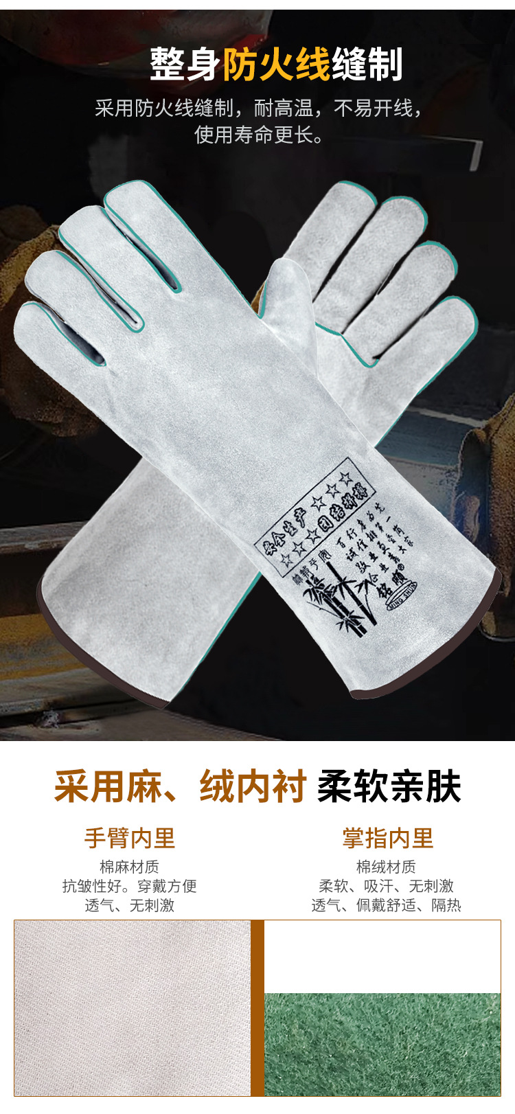 Mingshun 브랜드 778 용접 장갑 cowhide 고온 저항 단열재 안티-scald 장갑 긴 두꺼운 용접 용접기 용접 용접스토어 가기