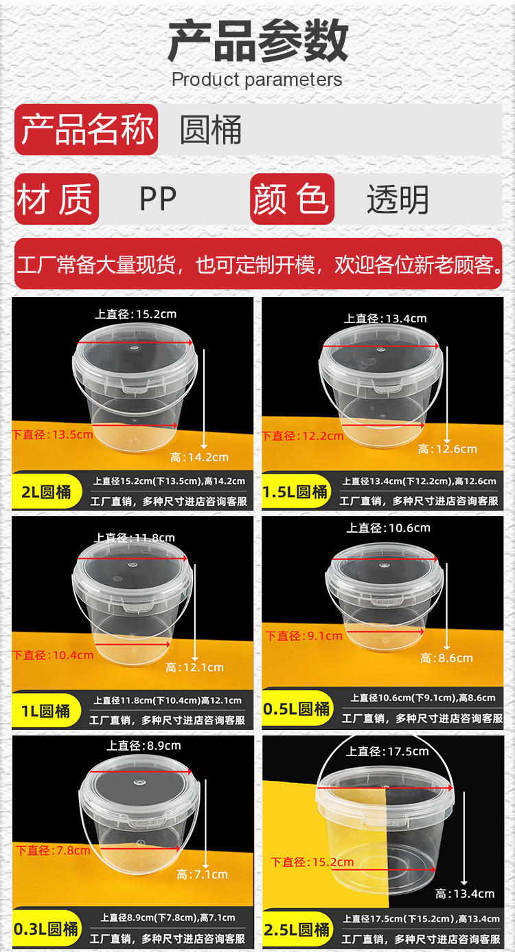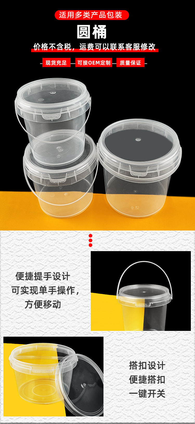 식품 용 뚜껑이있는 0.5L2L 휴대용 플라스틱 보관 배럴 색 진흙 모래 양동이 장난감 크리스탈 진흙 밀봉 우유 차 양동이