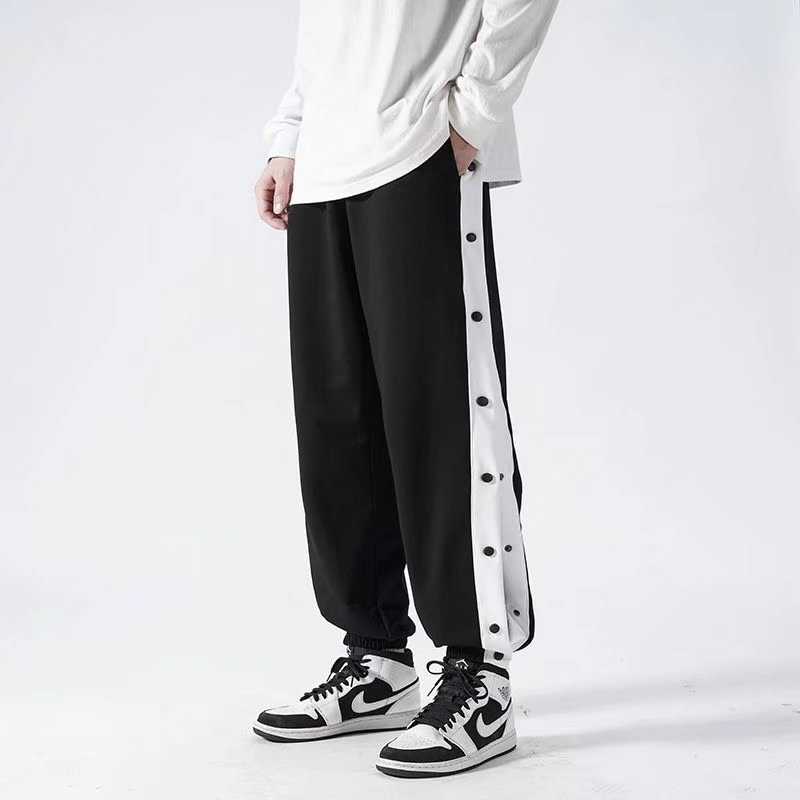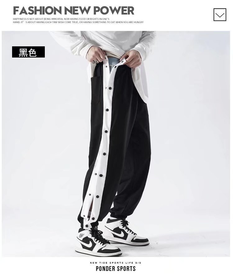 전체 브레스트 바지 남성용 2022 여름 얇은 Instagram 인기 브랜드 홍콩 스타일 캐주얼 바지 스포츠 발 버튼 트렌디 한 바지