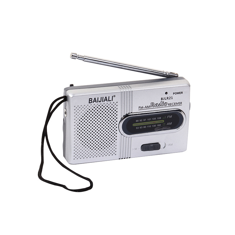 간단한 복고풍 실버 라디오 풀 밴드 내장 스피커 볼륨 오디오 소형 야외 휴대용 휴대용 로프