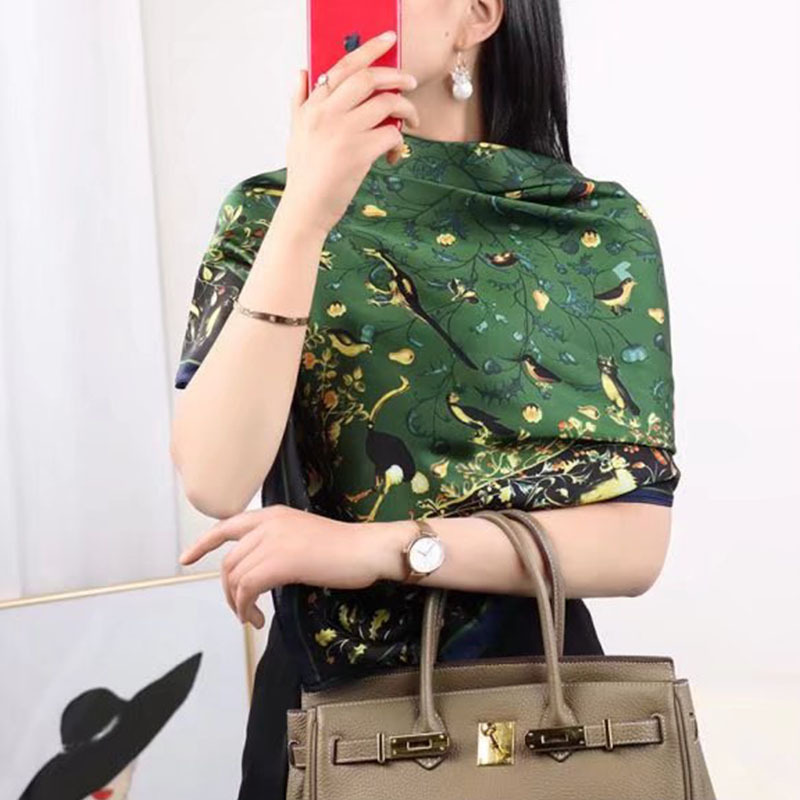 새틴 고급 프린트 실크 같은 110 대형 스퀘어 스카프 세련된 모든 매치 스카프 따뜻한 착용 숄 자외선 차단제 발가락스토어 가기