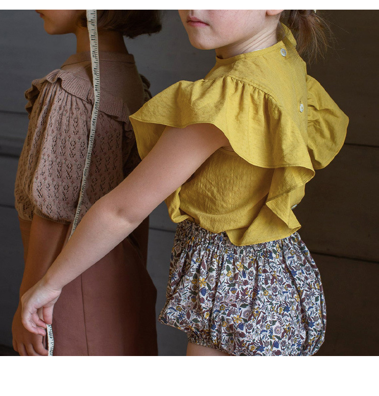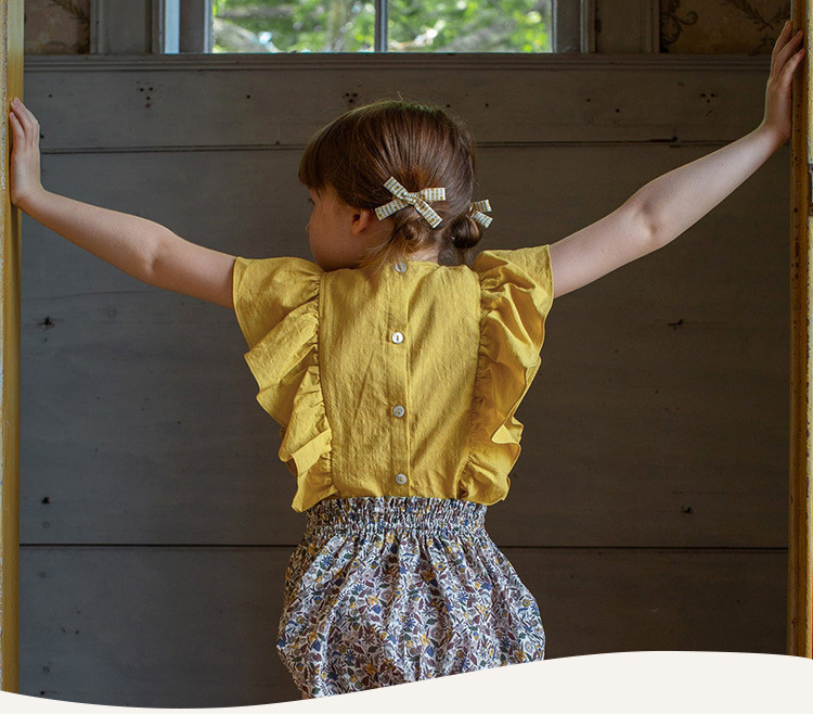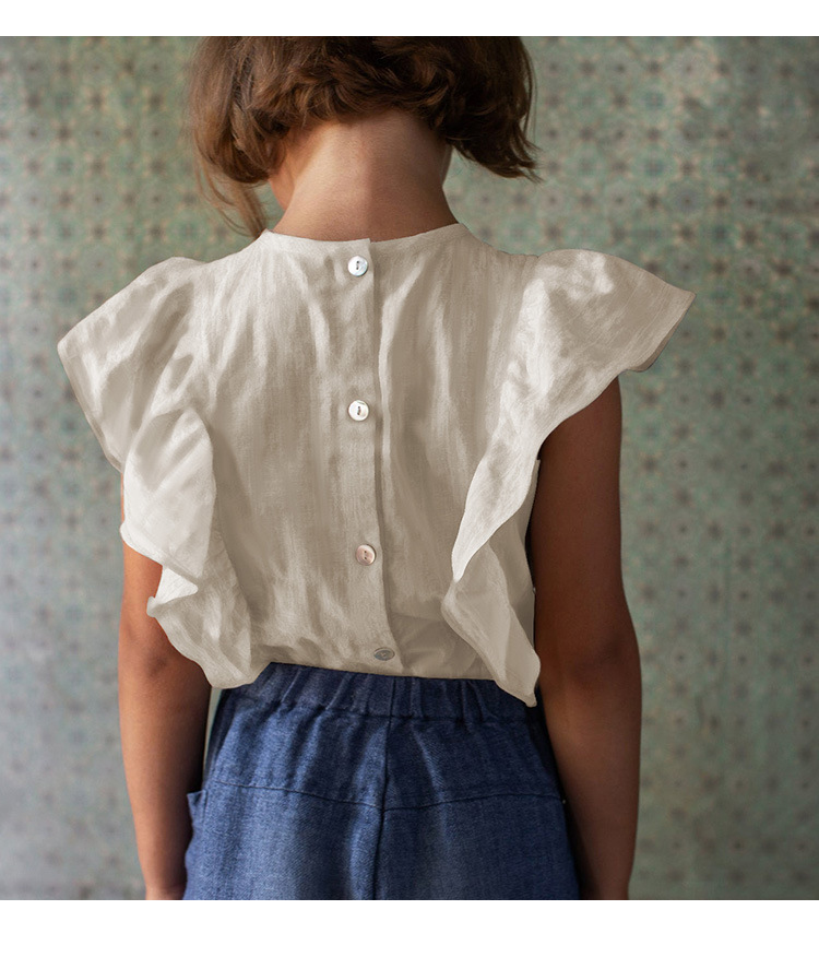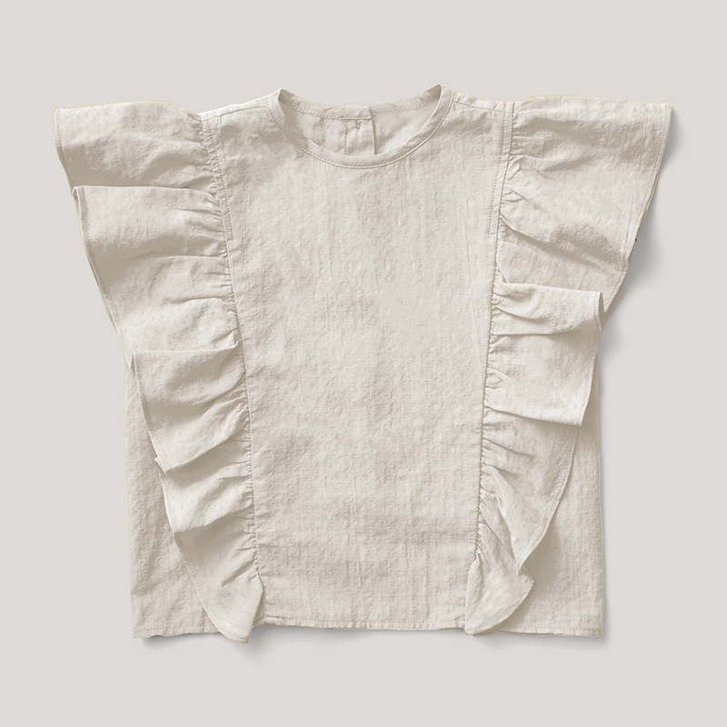 여아 의류 순면 작은 플라잉 슬리브 탑 반팔 티셔츠 여름 옷 귀엽고 세련된 러플 아기 소녀 멋진 셔츠 ~