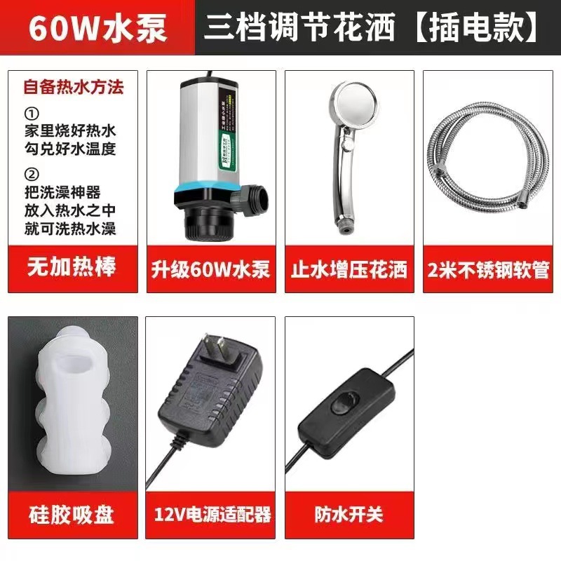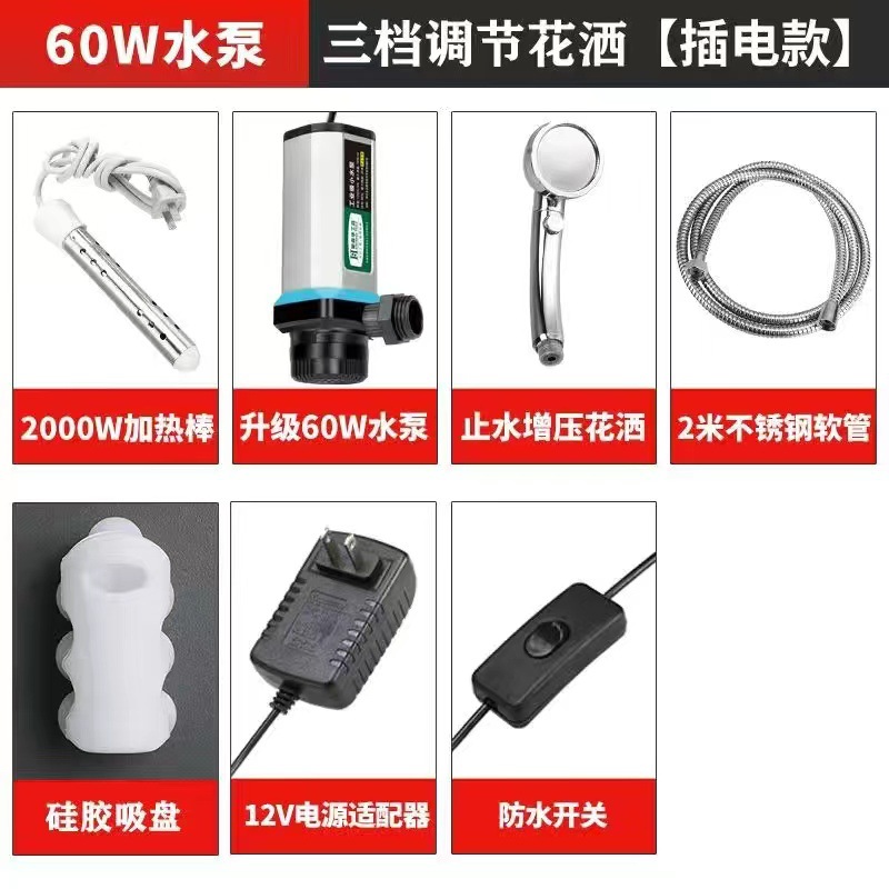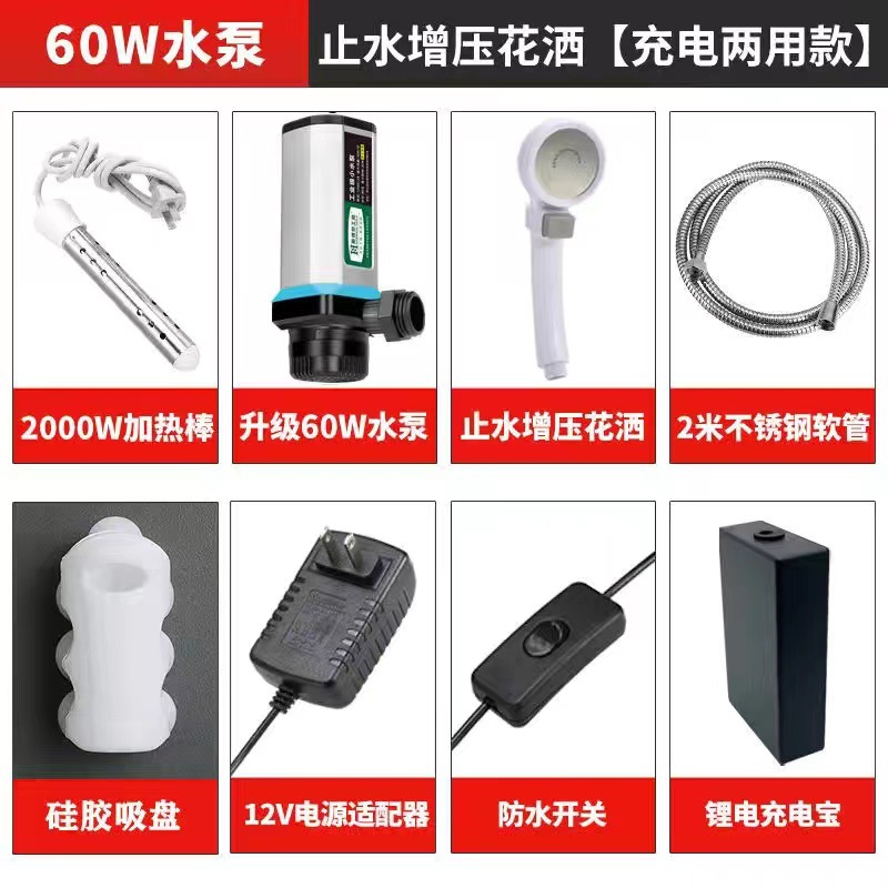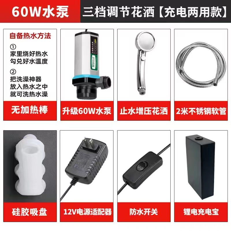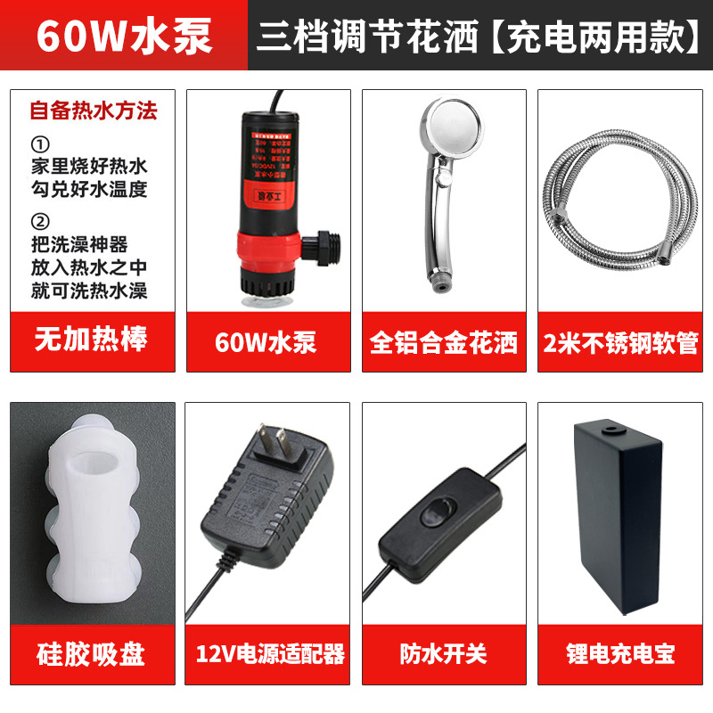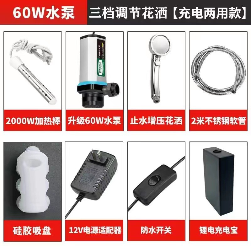 • 일반 60W 3 기어 조정 가능한 샤워 + 파워 뱅크 + 전기 가열로드
