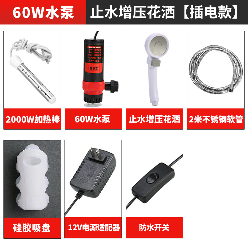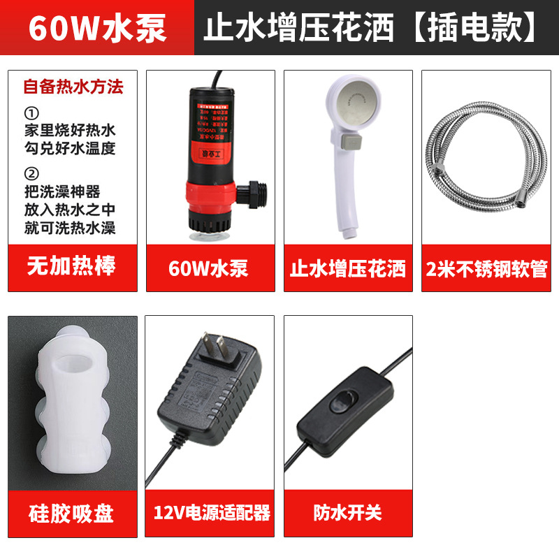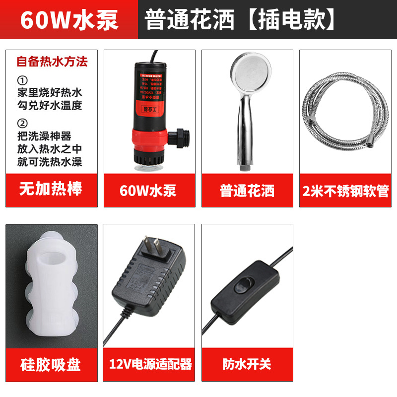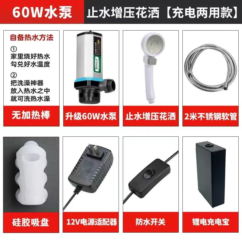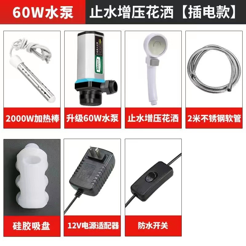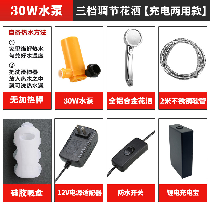 • 일반 60W 3 기어 조정 가능한 샤워 + 파워 뱅크 + 전기 가열로드