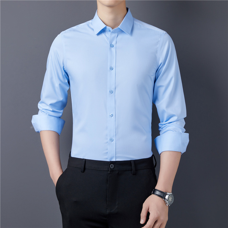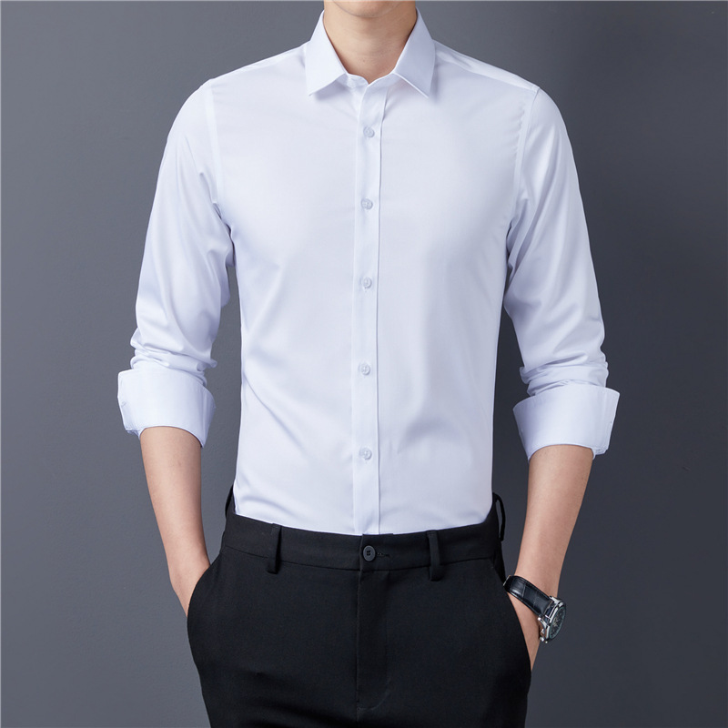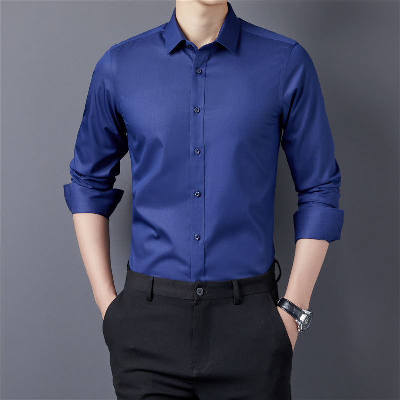 Mutuyu 새로운 대나무 섬유 셔츠 남성용 긴 소매 셔츠 단색 탄성 비 다림질 전문 도구 자수 로고스토어 가기