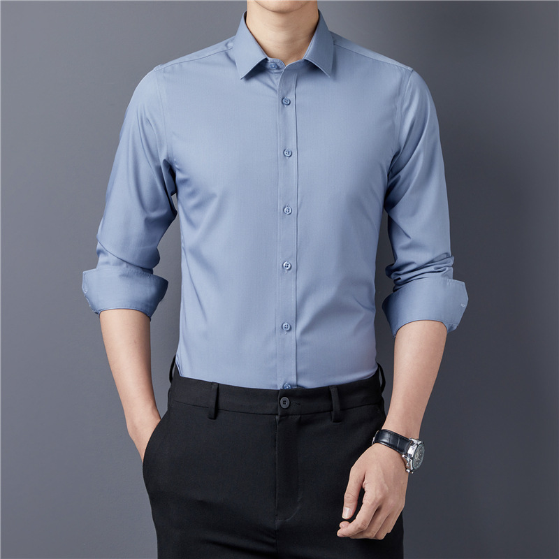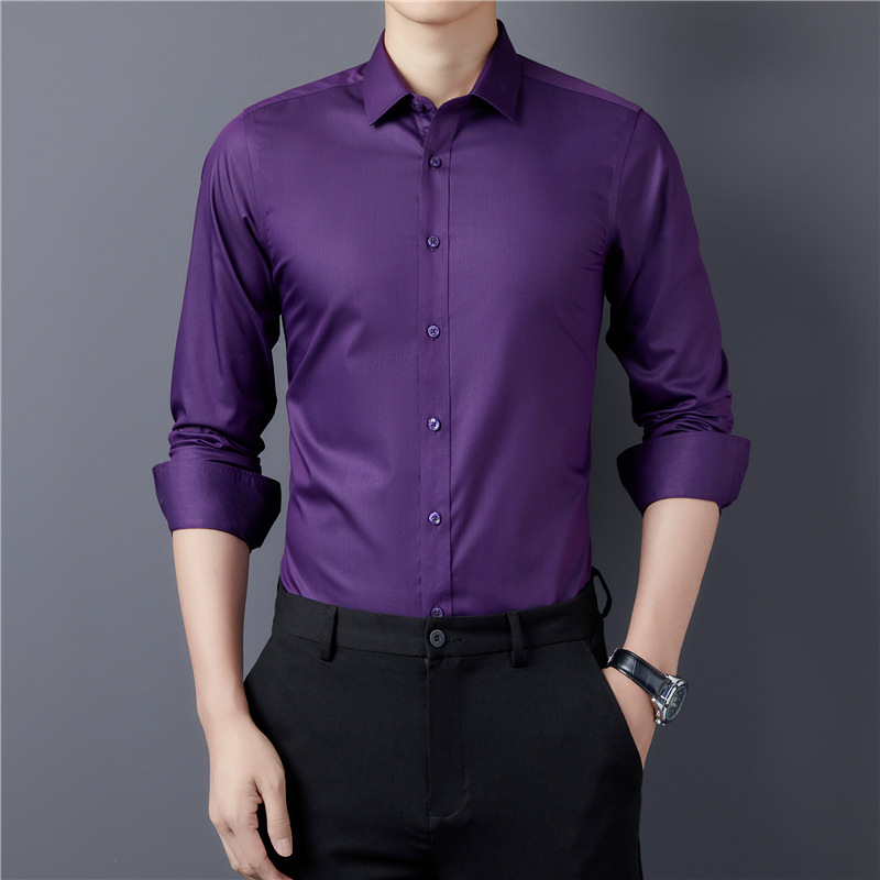 Mutuyu 새로운 대나무 섬유 셔츠 남성용 긴 소매 셔츠 단색 탄성 비 다림질 전문 도구 자수 로고