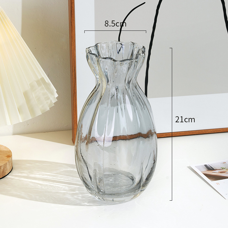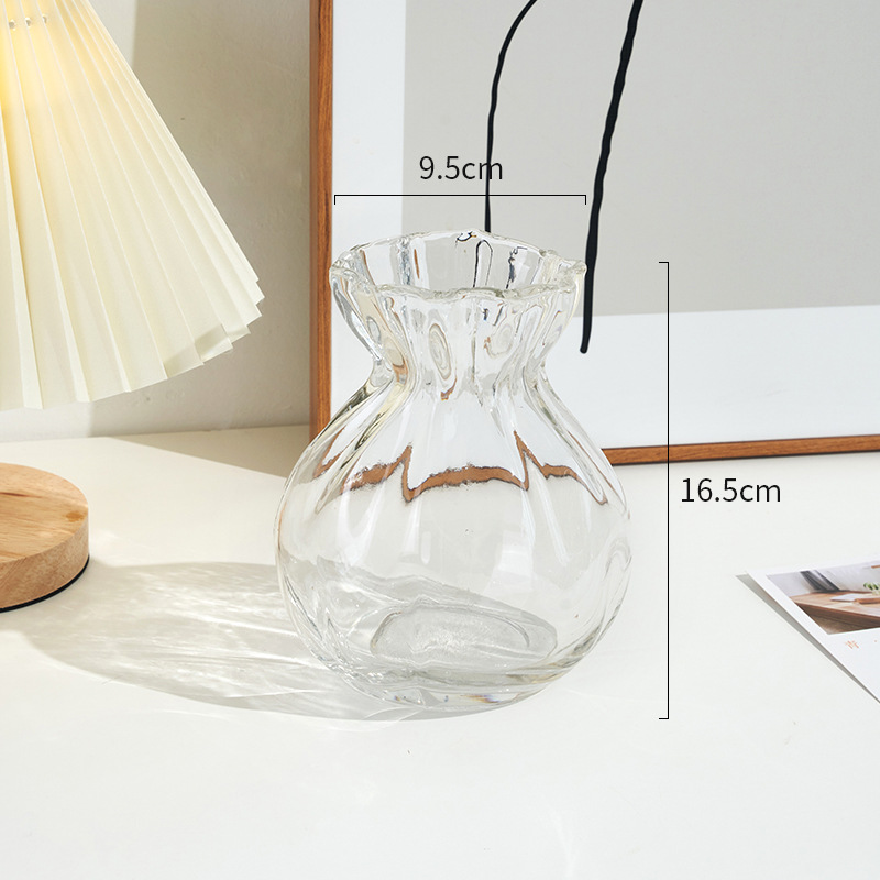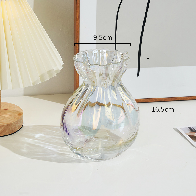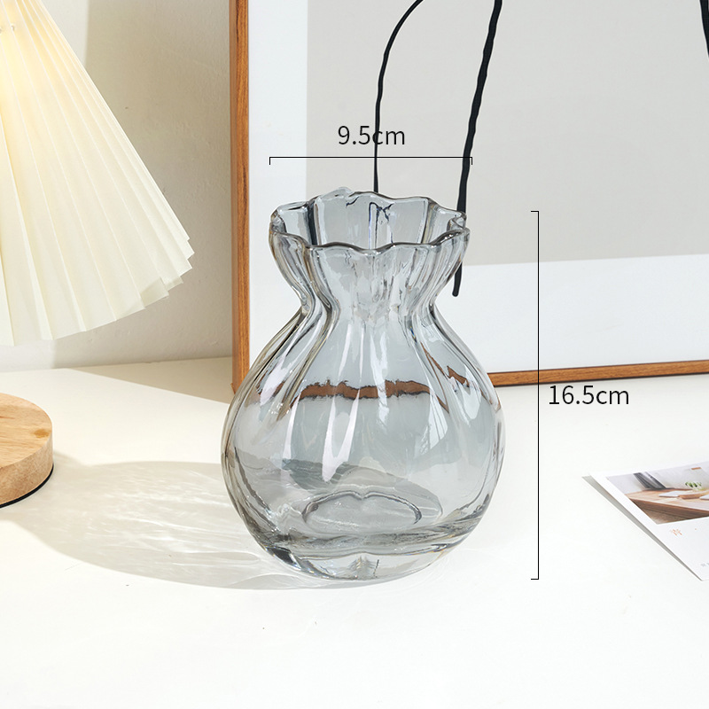 도매 새로운 중국 간단한 작은 신선한 행운의 가방 투명 유리 꽃병 홈 테이블 물 꽃 꽃꽂이