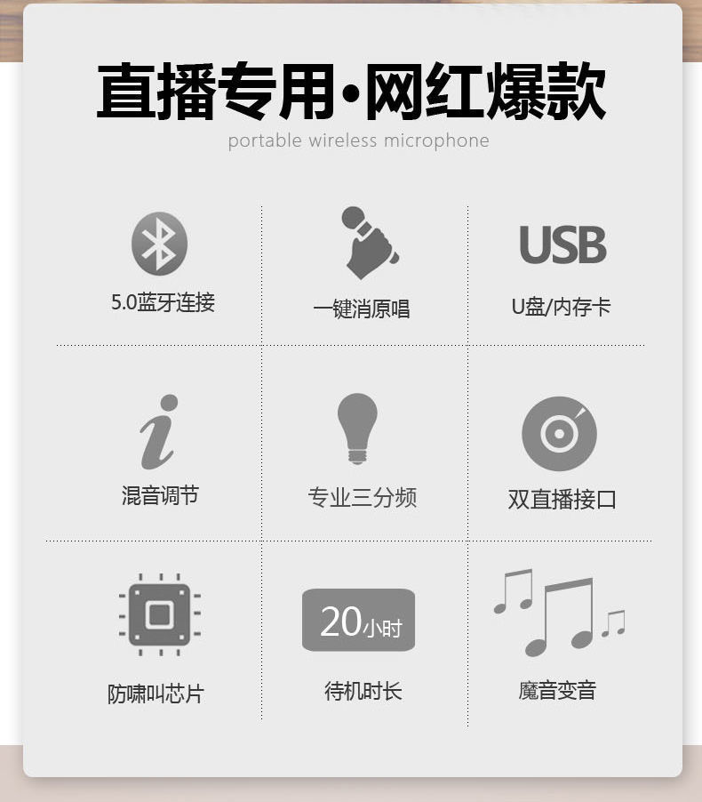 • 12 인치 라이브 방송 사운드 카드 + 무선 전문 노래방 마이크 2 개
