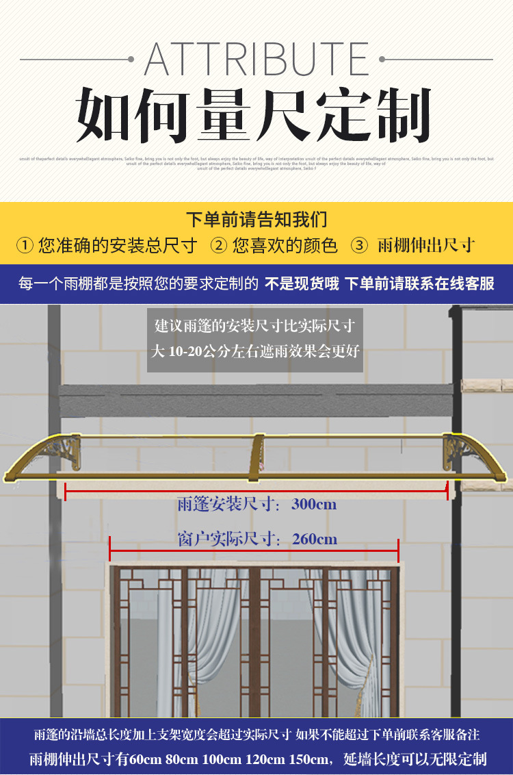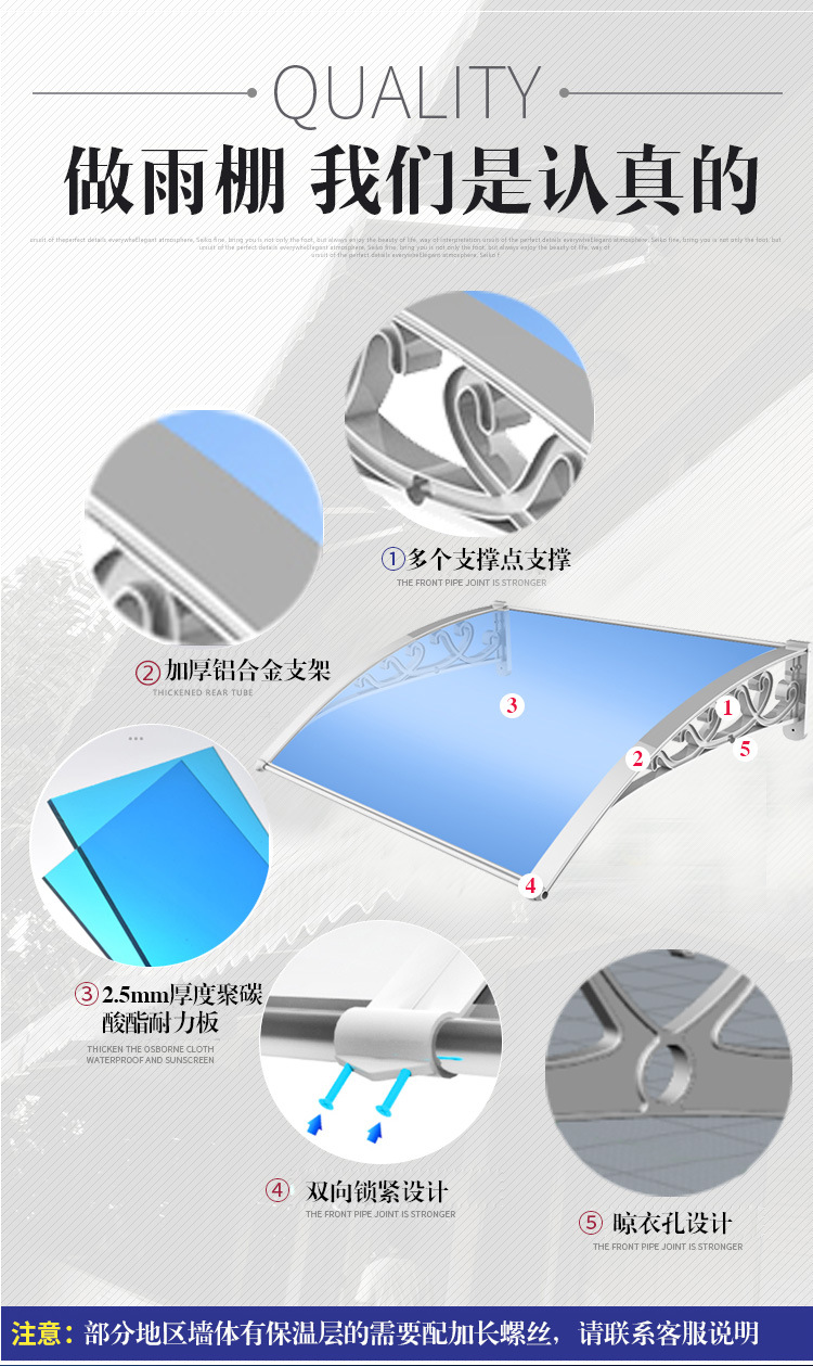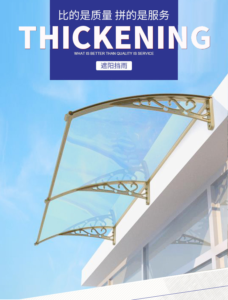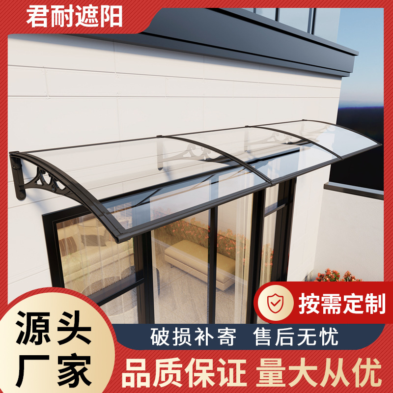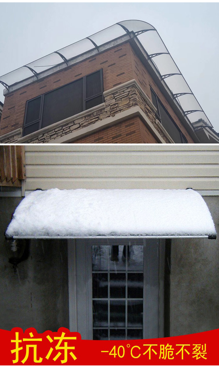 铝合金雨棚户外无声防雨蓬家用阳台门窗pc耐力板静音雨搭遮阳雨篷