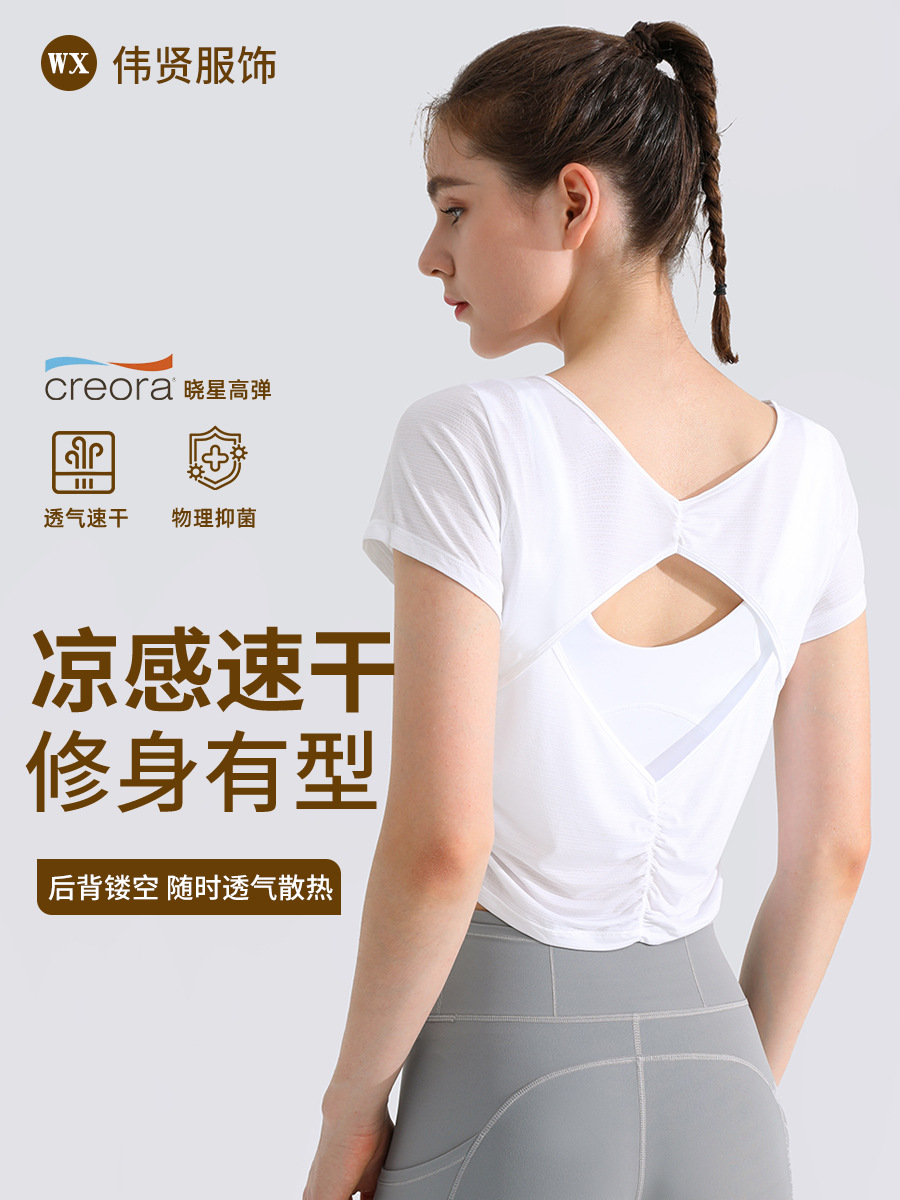 시원한 여름 속건 통기성 피트니스 탑 여성용 짧은 탱크 티셔츠 아름다운 등 느슨한 요가 반팔 스포츠 블라우스스토어 가기