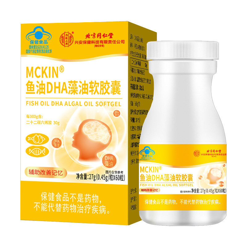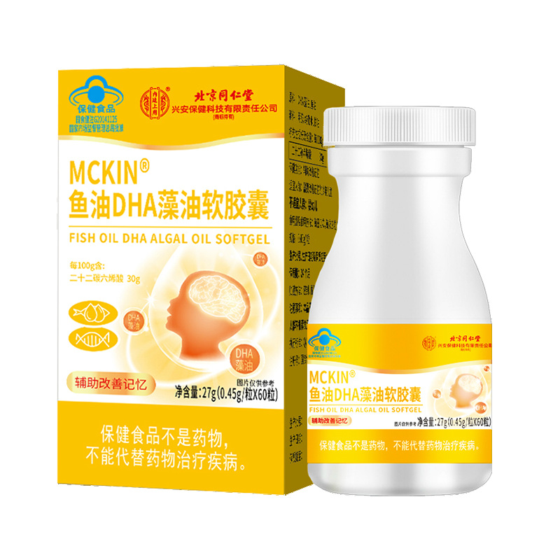 베이징 Tongrentang 내부 법원에서 사용 된 어유 DHA 조류 오일 연질 캡슐 심해 대구 간유 기억 개선스토어 가기
