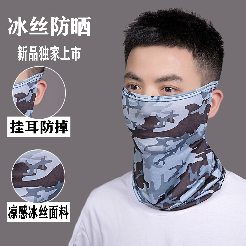 여름 아이스 실크 교수형 귀 자외선 차단제 마스크 남성용 얼굴 덮음 야외 스포츠 자외선 차단 머리 스카프 여성용 아마존