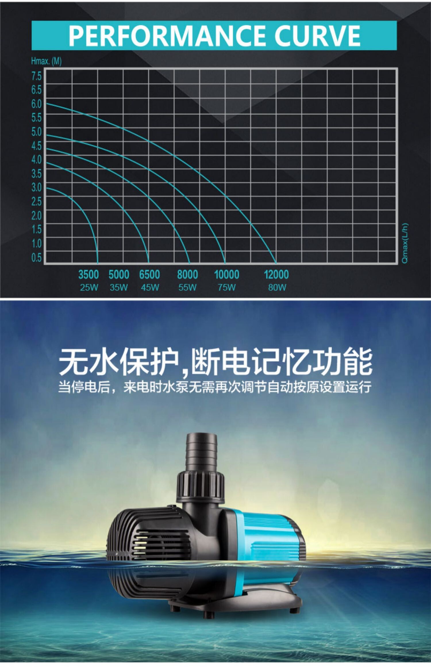 • 2 세대 원격 제어 워터 펌프 70W