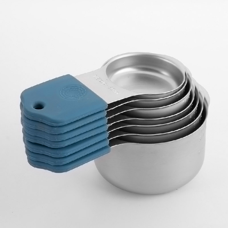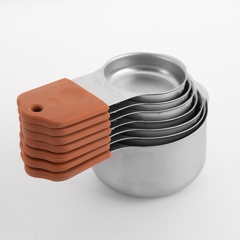 스테인레스 스틸 7 피스 실리콘 계량컵 베이킹 계량컵 식품 등급 베이킹 조미료 컵 제조 업체 국경 직구