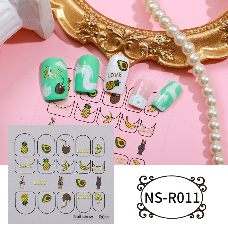 Zhengxiang 작은 빨간 책 INS 네일 아트 스티커 도매 귀여운 과일 잎 DIY 네일 아트 보석 창조적 인 창조적 인 스티커스토어 가기