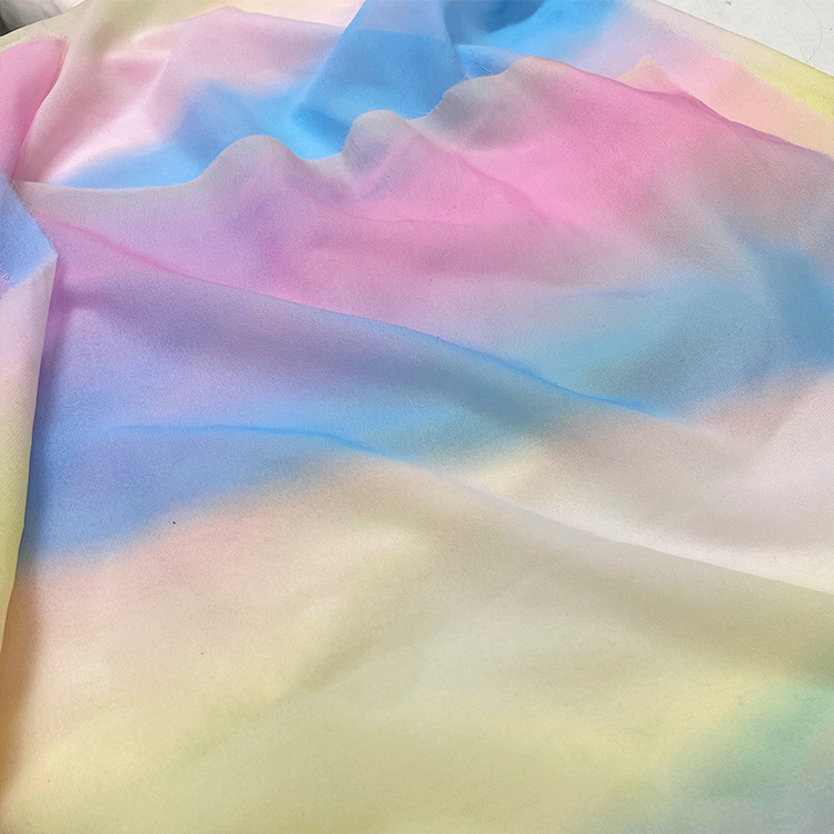 봄과 여름 새로운 무지개 그라데이션 인쇄 직물 여성 아동복 원피스 치마 직물 원산지 공급