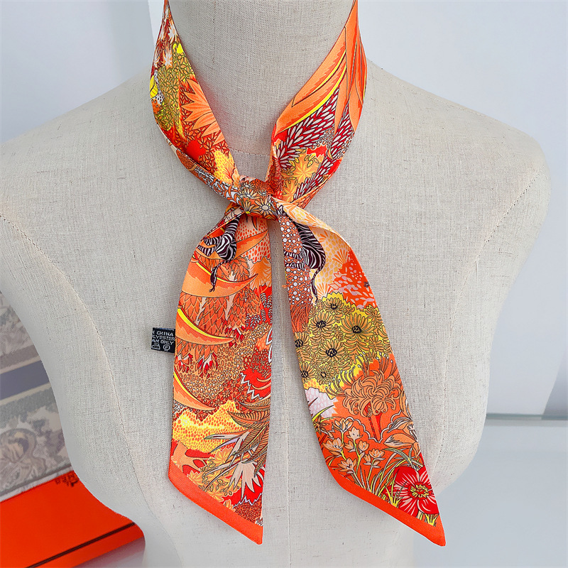 새로운 디지털 인쇄 능직 실크 스카프 더블 레이어 베벨 항저우 하이 퀄리티 능직 실크 넥타이 가방 헤어 벨트 동반 선물스토어 가기