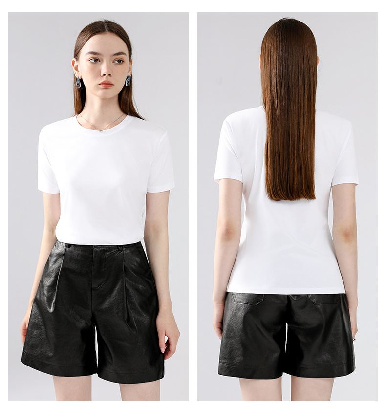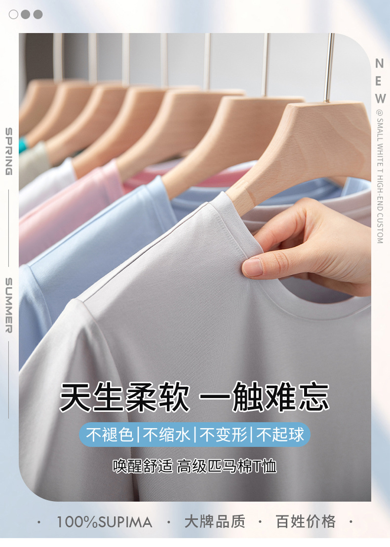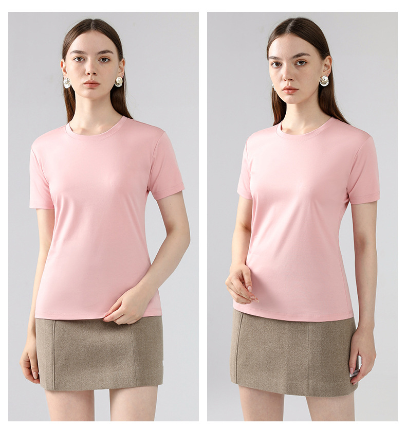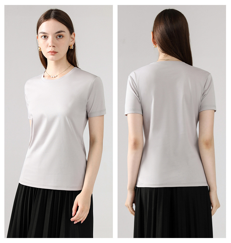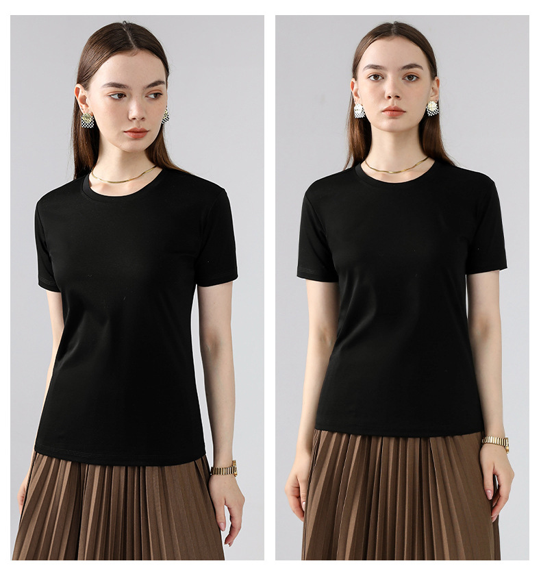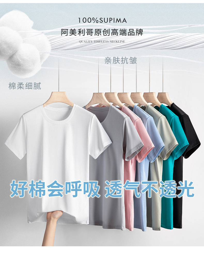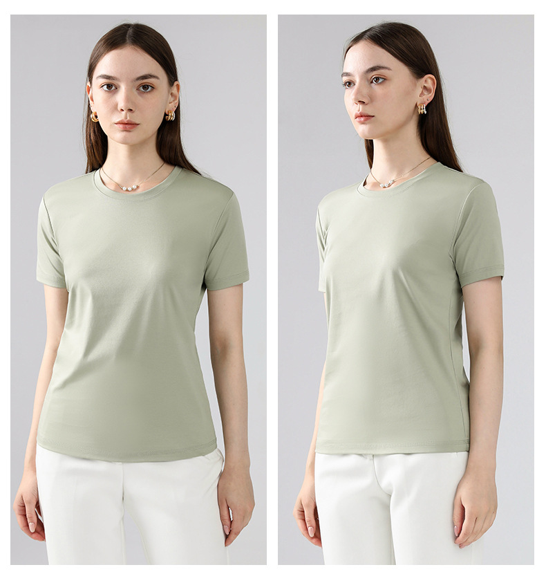 고급 말 피마 면 라운드 넥 순면 반팔 여성용 티셔츠 아이스 실크 화이트 반팔 티셔츠 베이스 셔츠스토어 가기