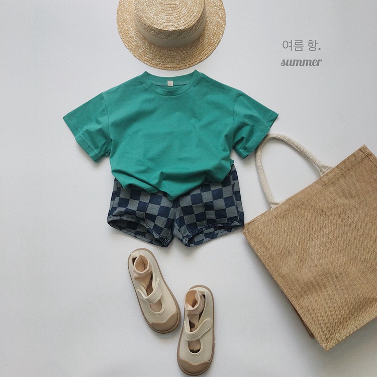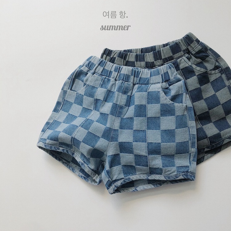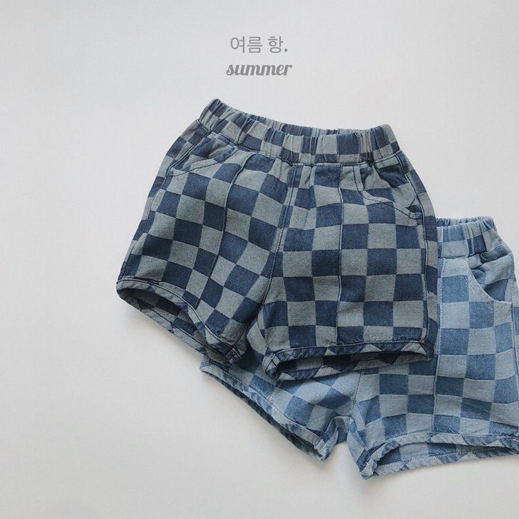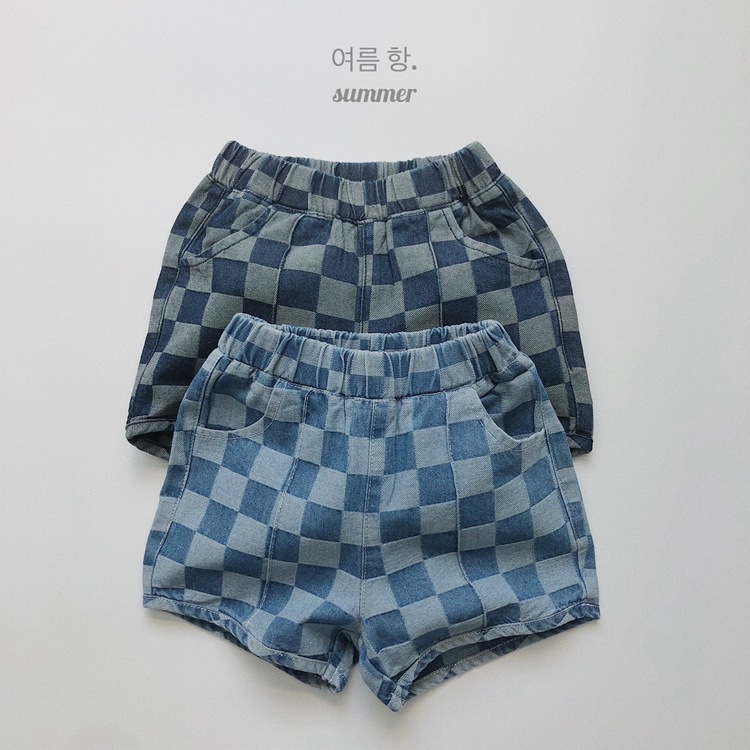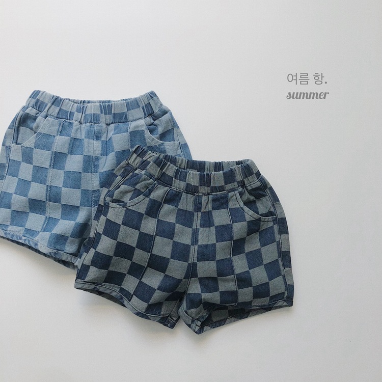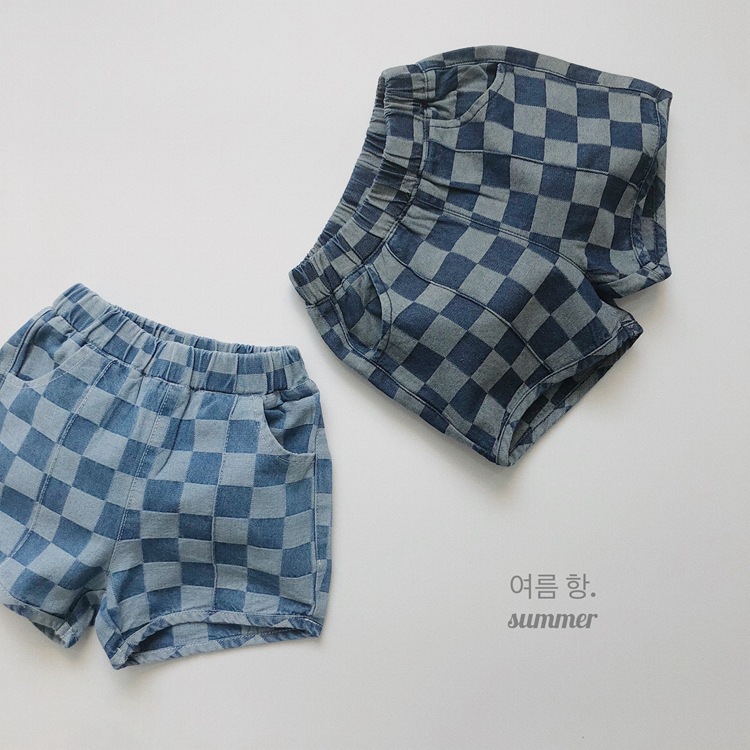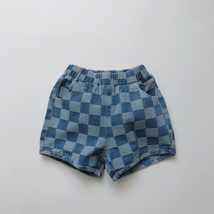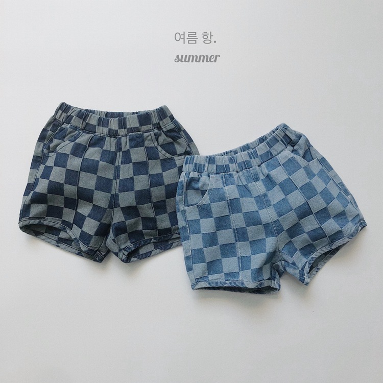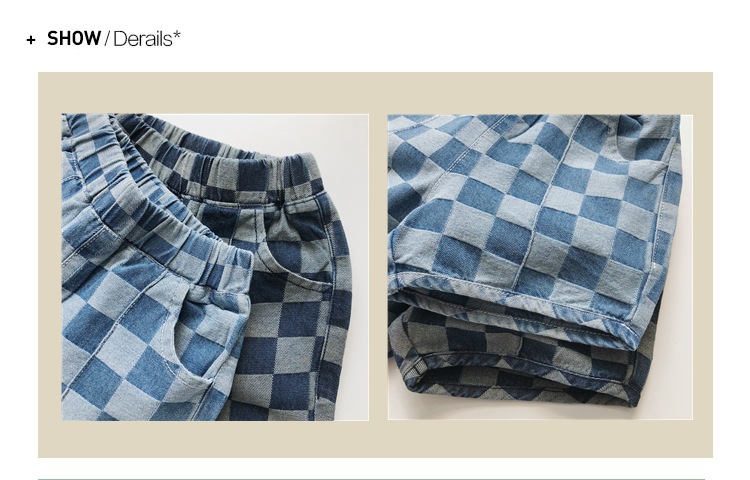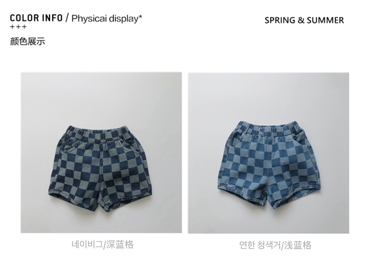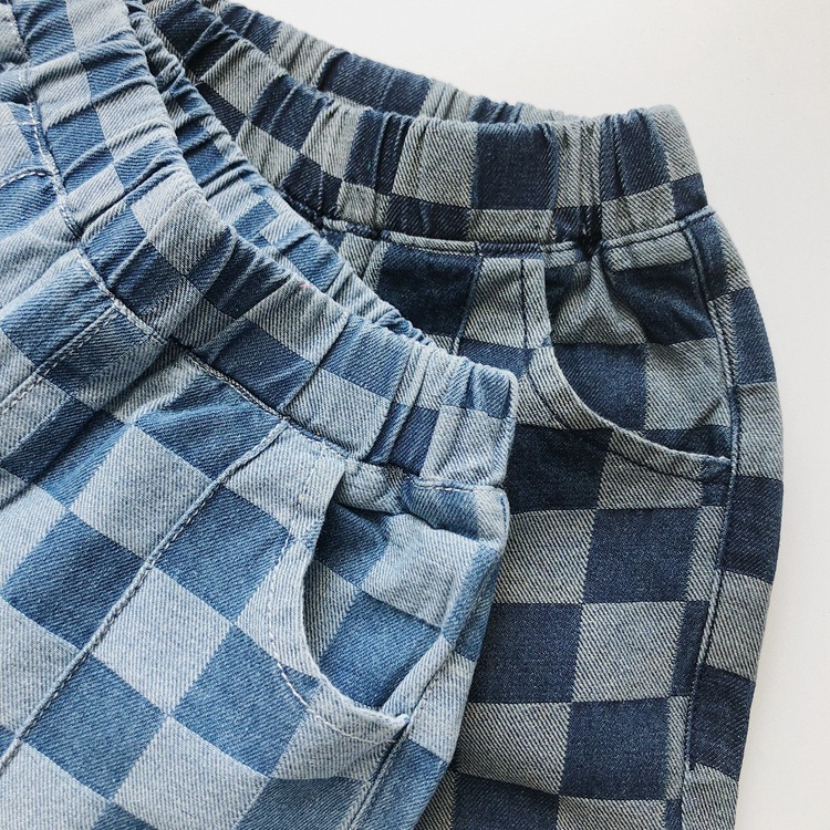일본과 한국 스타일 유행 ~ 여름 새로운 한국 스타일 어린이 격자 무늬 데님 반바지 소년과 소녀를위한 모든 경기 복고풍 캐주얼 바지스토어 가기