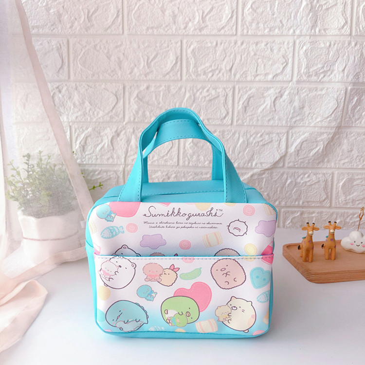 일본 만화 Kulomi 귀여운 절연 도시락 가방 편리한 접이식 PU 가죽 알루미늄 호일 휴대용 도시락 가방스토어 가기