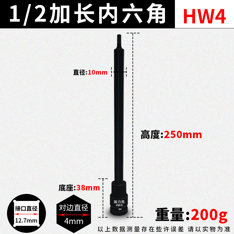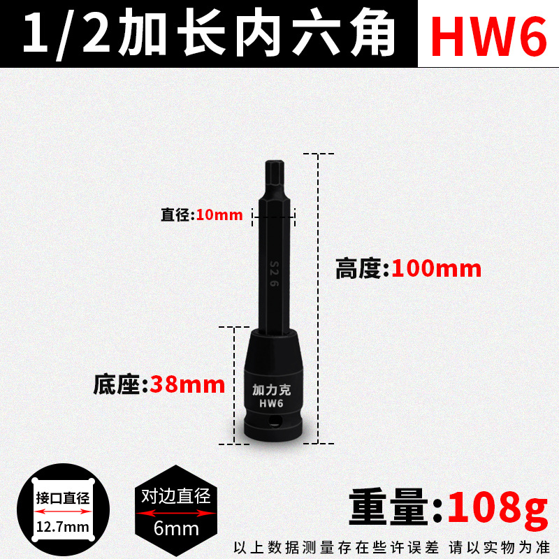 1/2 인치 대형 비행 압력 배치 육각 소켓 연장 드라이버 소켓 여분의 긴 전기 렌치 소형 윈드 건 내부 육각 배치 헤드