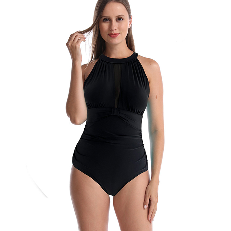 크로스 보더 새로운 유럽 및 미국 원피스 수영복 여성용 배꼽 덮개 슬리밍 메쉬 스티칭 넥 프린트 수영복 아마존 수영복스토어 가기