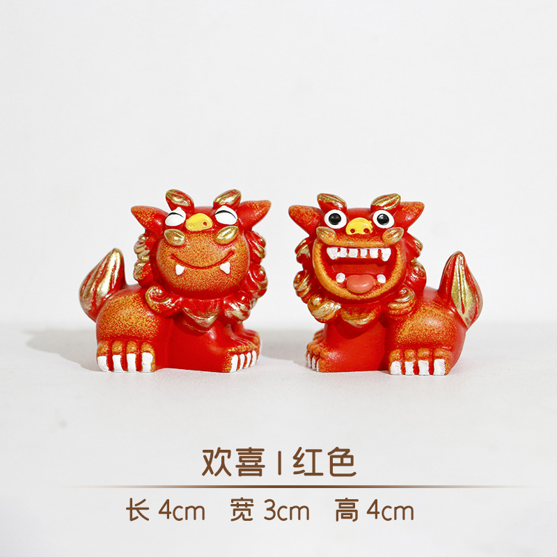 【소형】사자삼백 | 행복한 문화창작 소품 거실 동물 장식 중국풍 수지 장식 축복스토어 가기