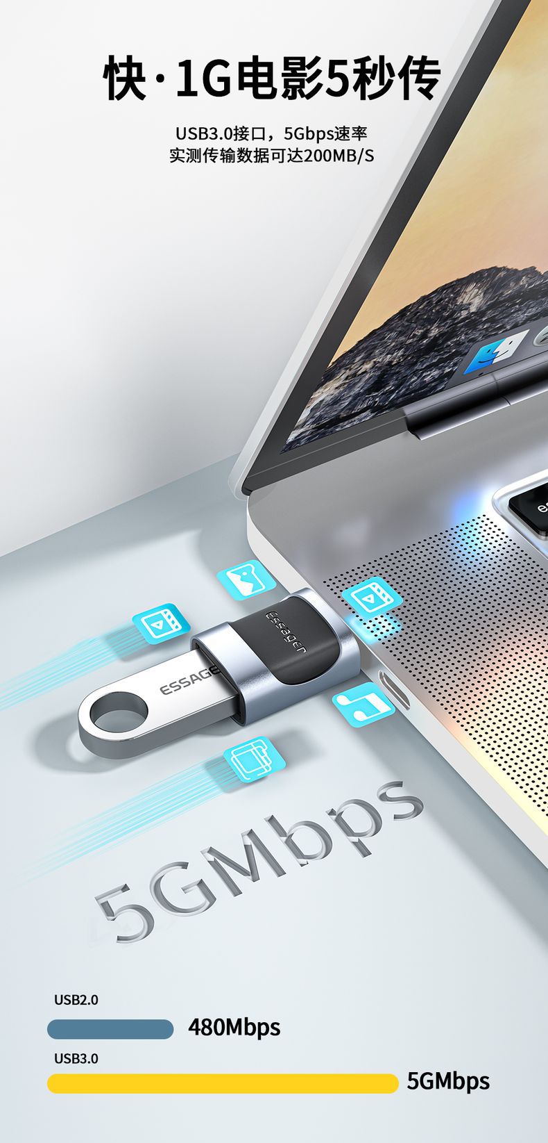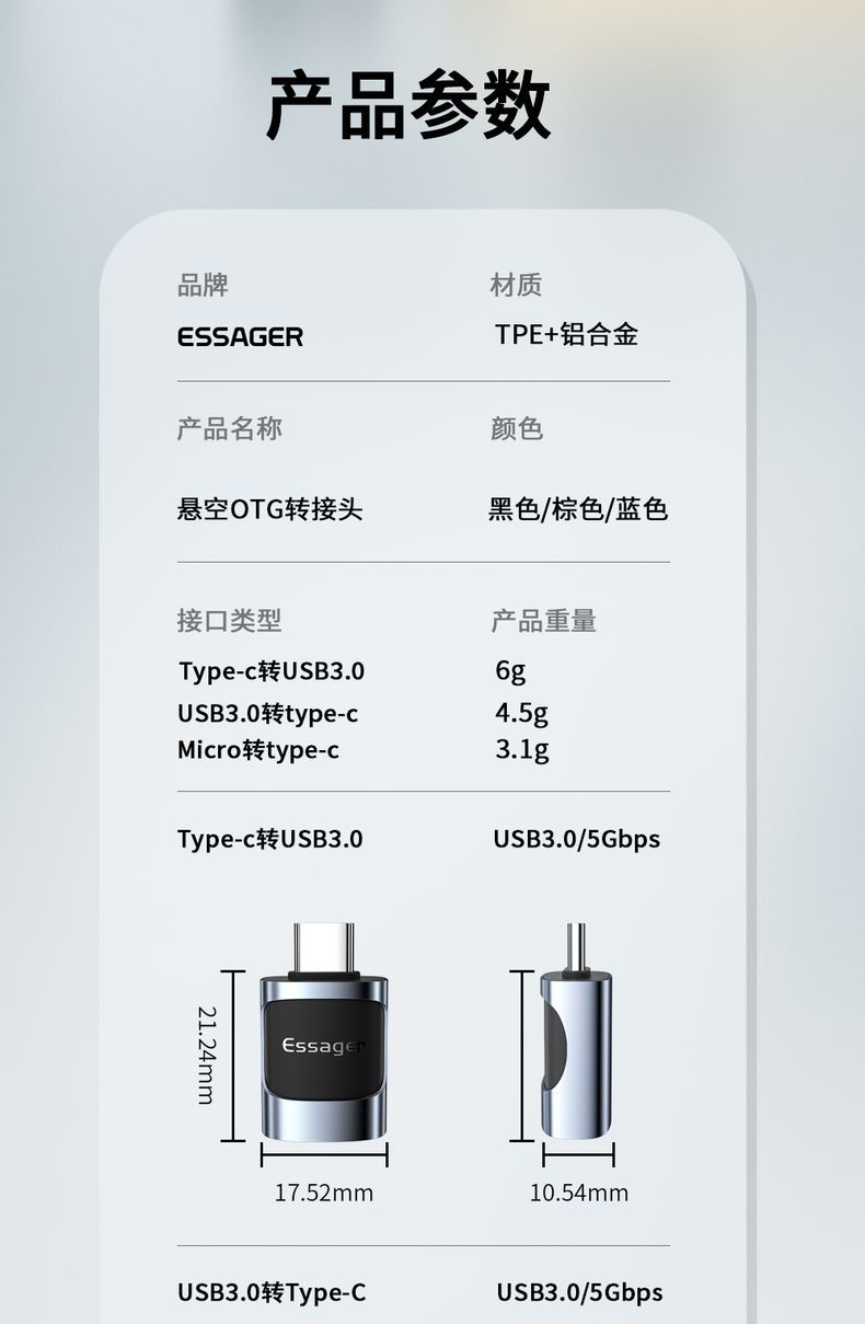 【接口】USB3.0(USB母转Type-c公,Type-c母转USB公),USB2.0(Micro母转Type-c公)