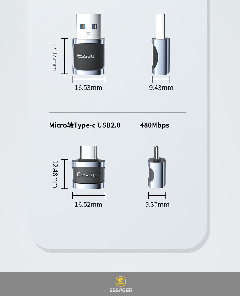 【产品尺寸】USB母转Type-c公/21.24*17.52*10.54mm,Type-c母转USB公/17.18*16.53*9.43mm,Micro母转Type-c公/12.48*16.52*9.37mm