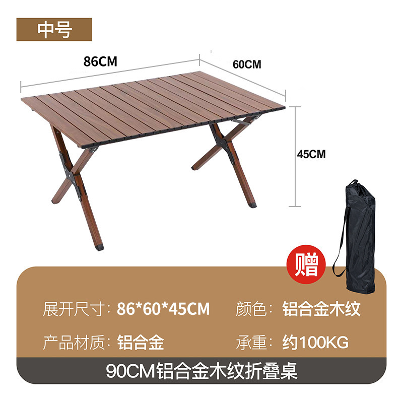 • 90cm 알루미늄 합금 우드 그레인 접이식 테이블