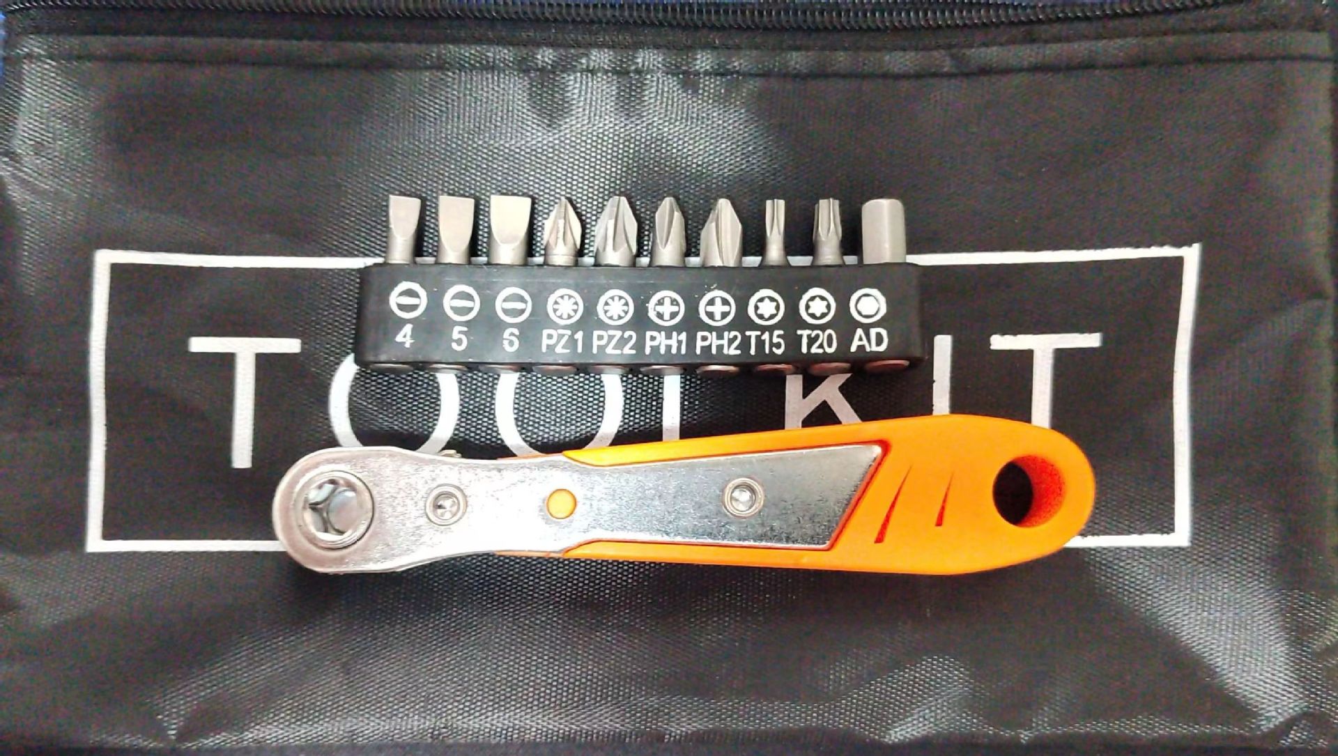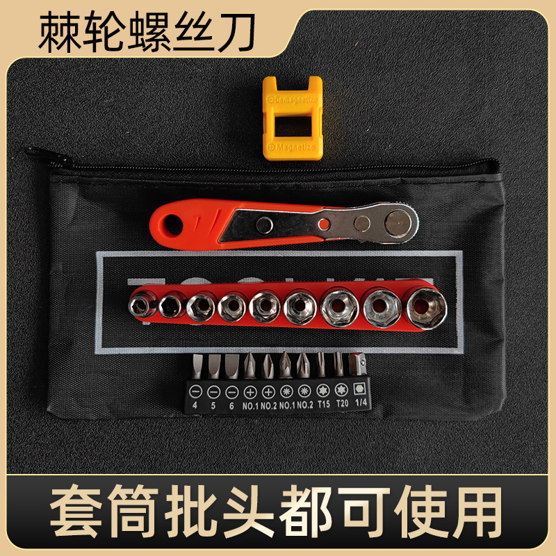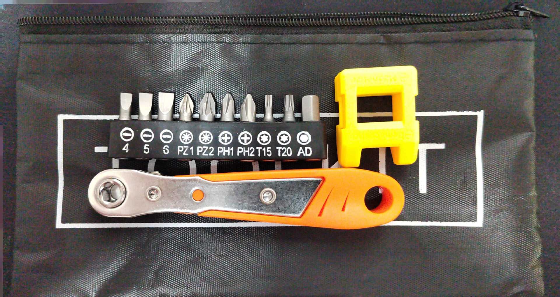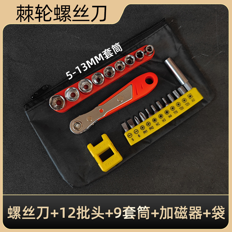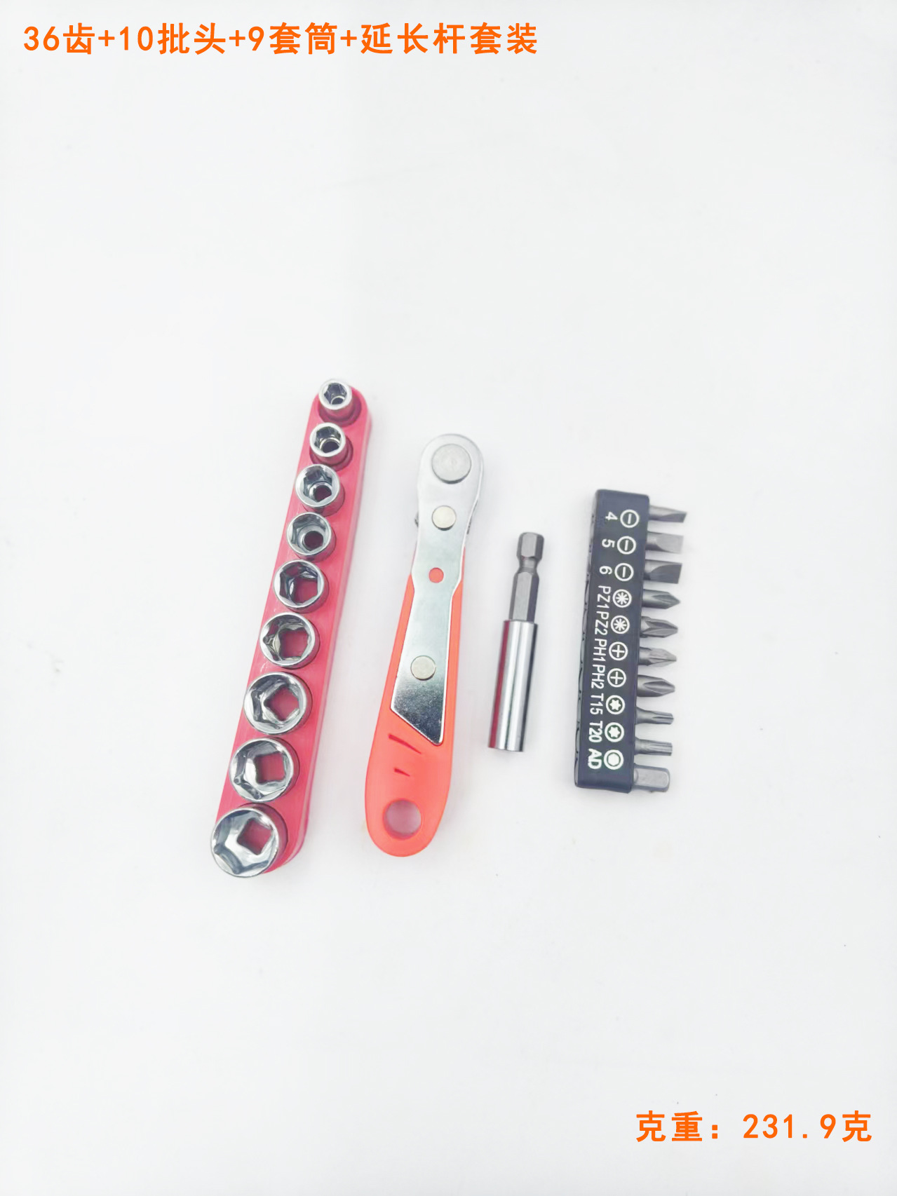 • 래칫 드라이버 + 비트 10개 + 소켓 9개 + 연장대