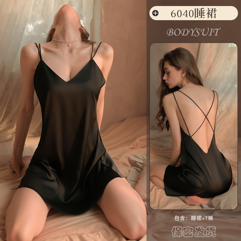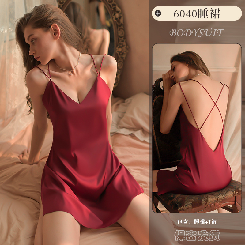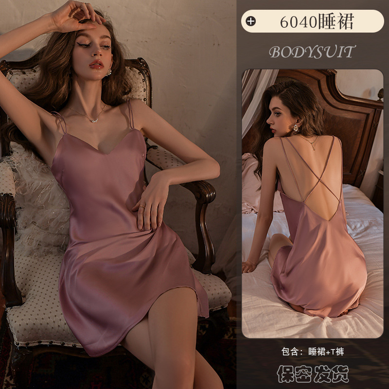 Zongqu 서스펜더 잠옷 여성 여름 얼음 실크 등이없는 대형 하이 엔드 순수한 정욕 스타일 섹시한 잠옷 도매 6040