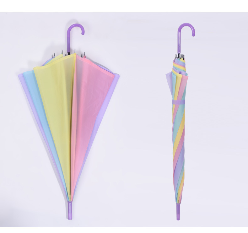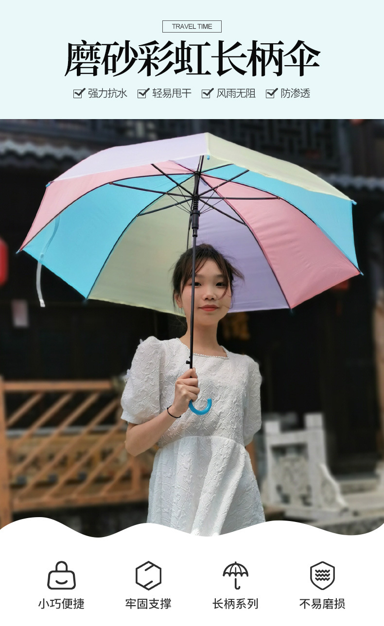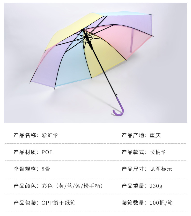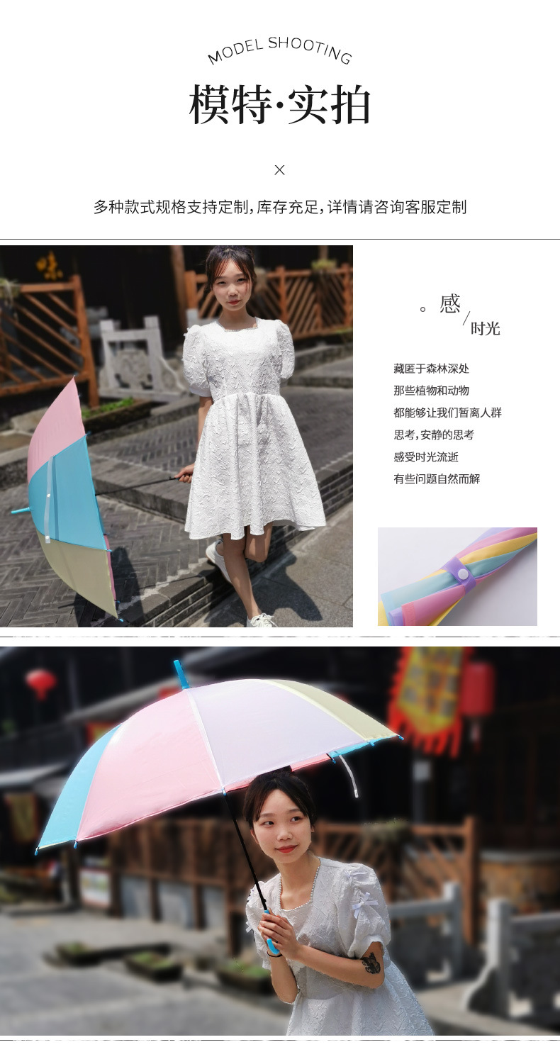 무지개 반투명 우산 긴 손잡이 자동 광고 우산 선물용 우산 비와 햇빛 모두 사용 가능 로고 인쇄 가능 창의적이고 트렌디함스토어 가기
