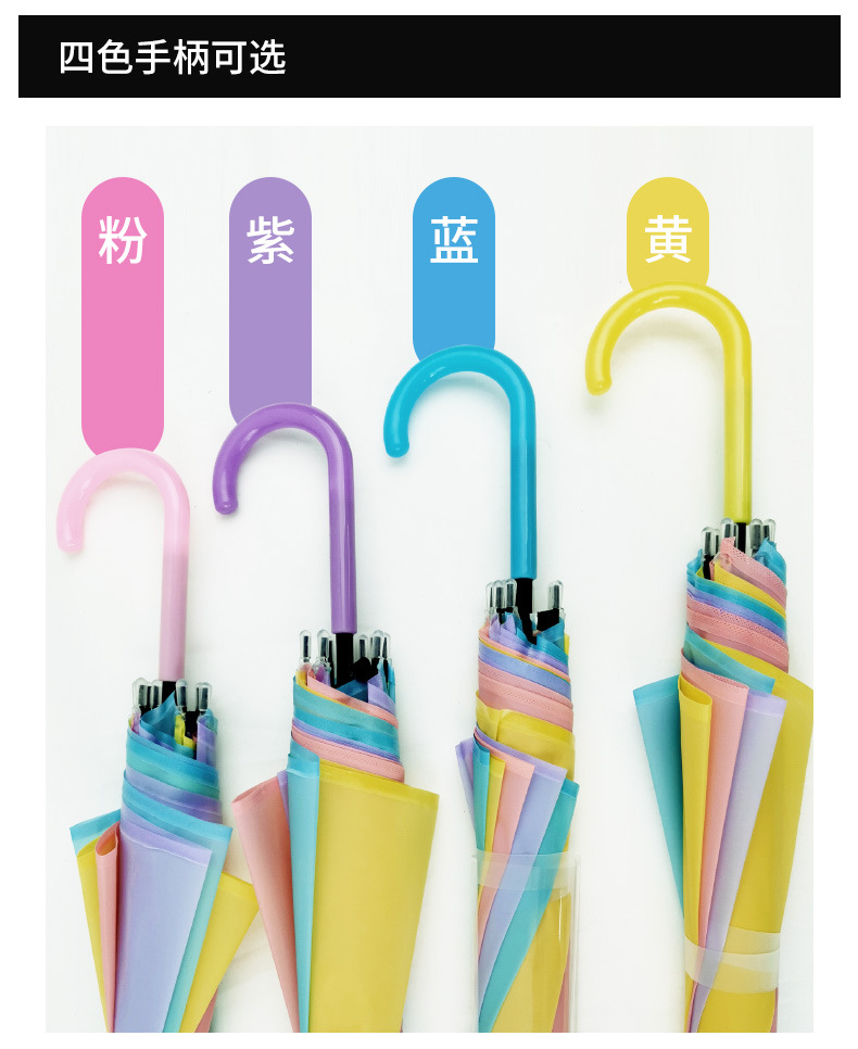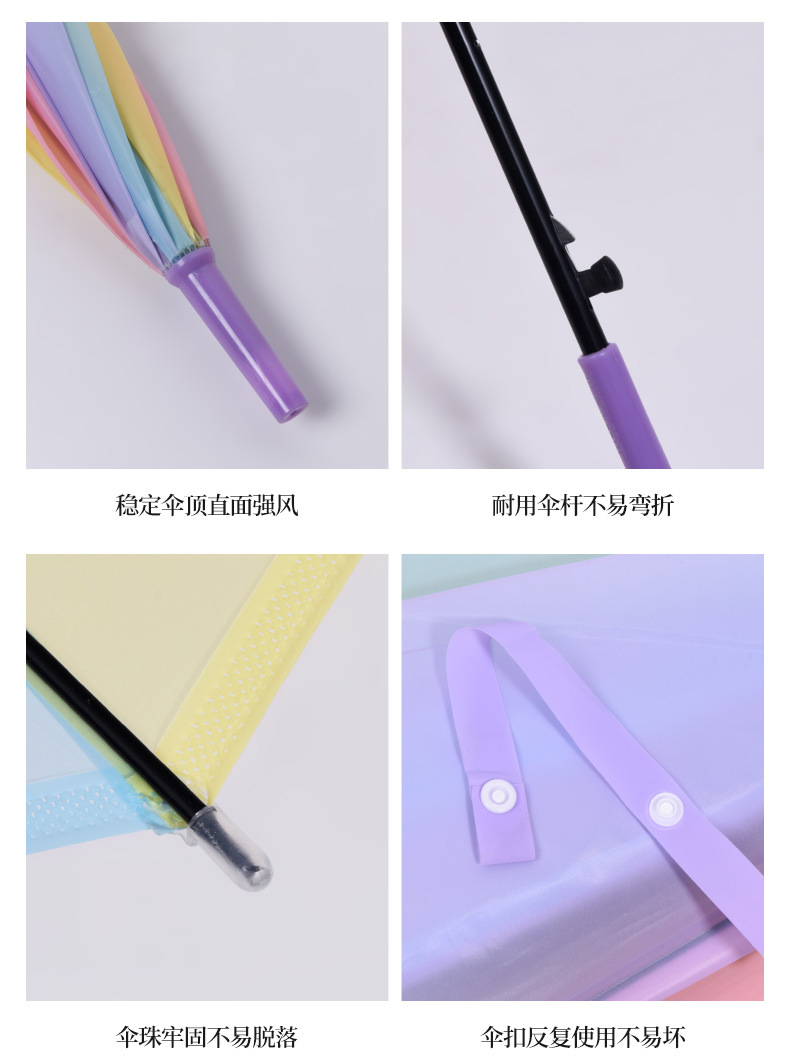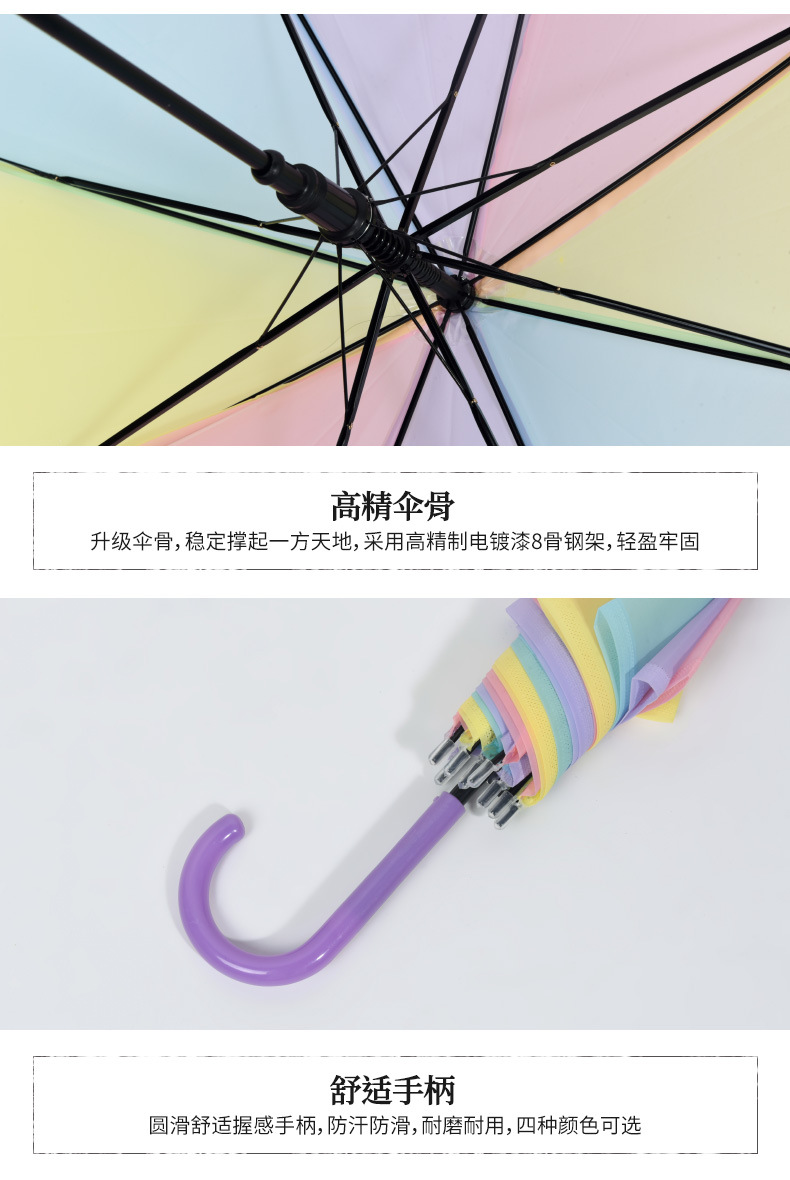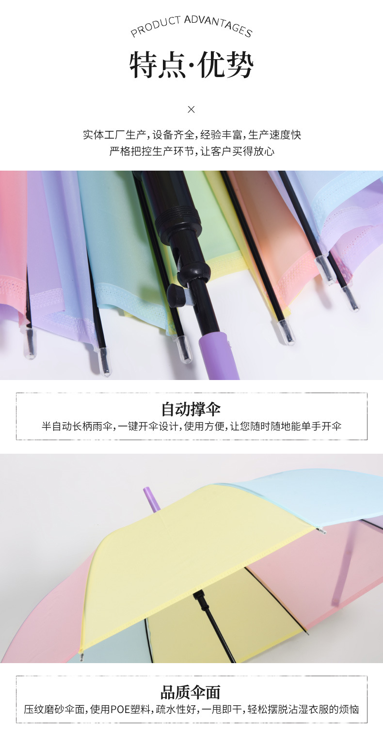 무지개 반투명 우산 긴 손잡이 자동 광고 우산 선물용 우산 비와 햇빛 모두 사용 가능 로고 인쇄 가능 창의적이고 트렌디함스토어 가기
