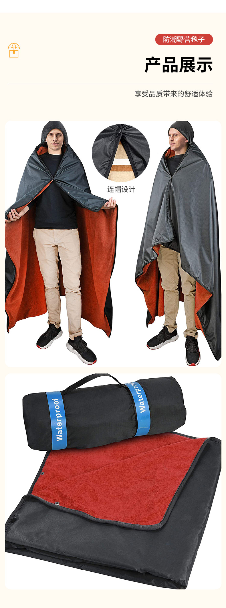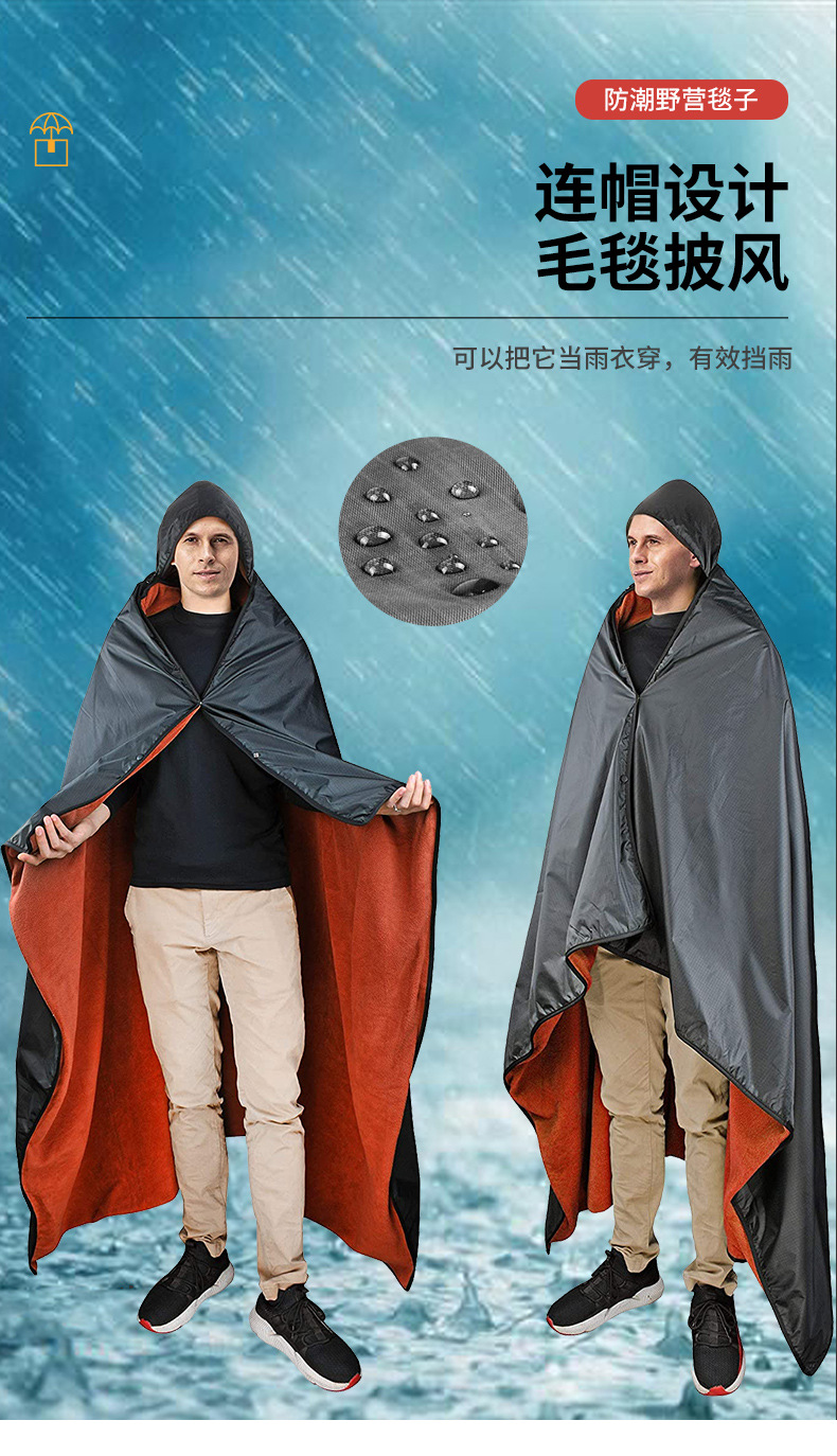 후드가 달린 야외 담요, 방풍 및 보온 기능, 착용 가능한 캠핑 이불, 휴대용 망토형 피크닉 매트, 야외 캠핑 담요