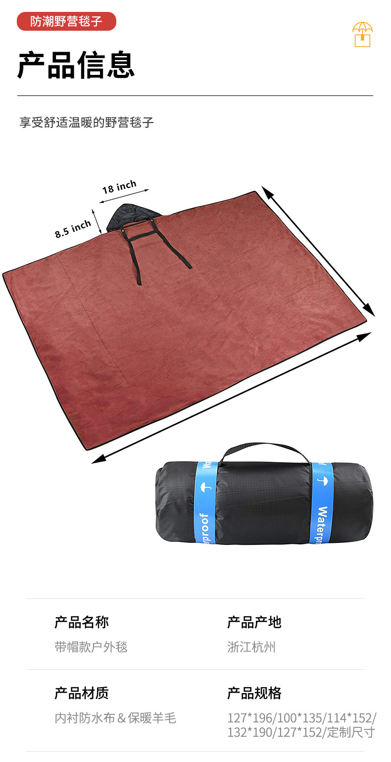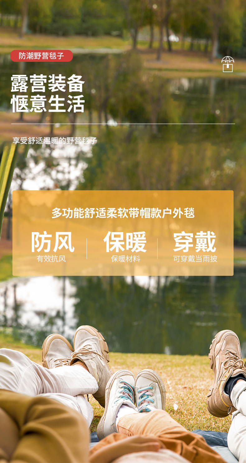 후드가 달린 야외 담요, 방풍 및 보온 기능, 착용 가능한 캠핑 이불, 휴대용 망토형 피크닉 매트, 야외 캠핑 담요스토어 가기