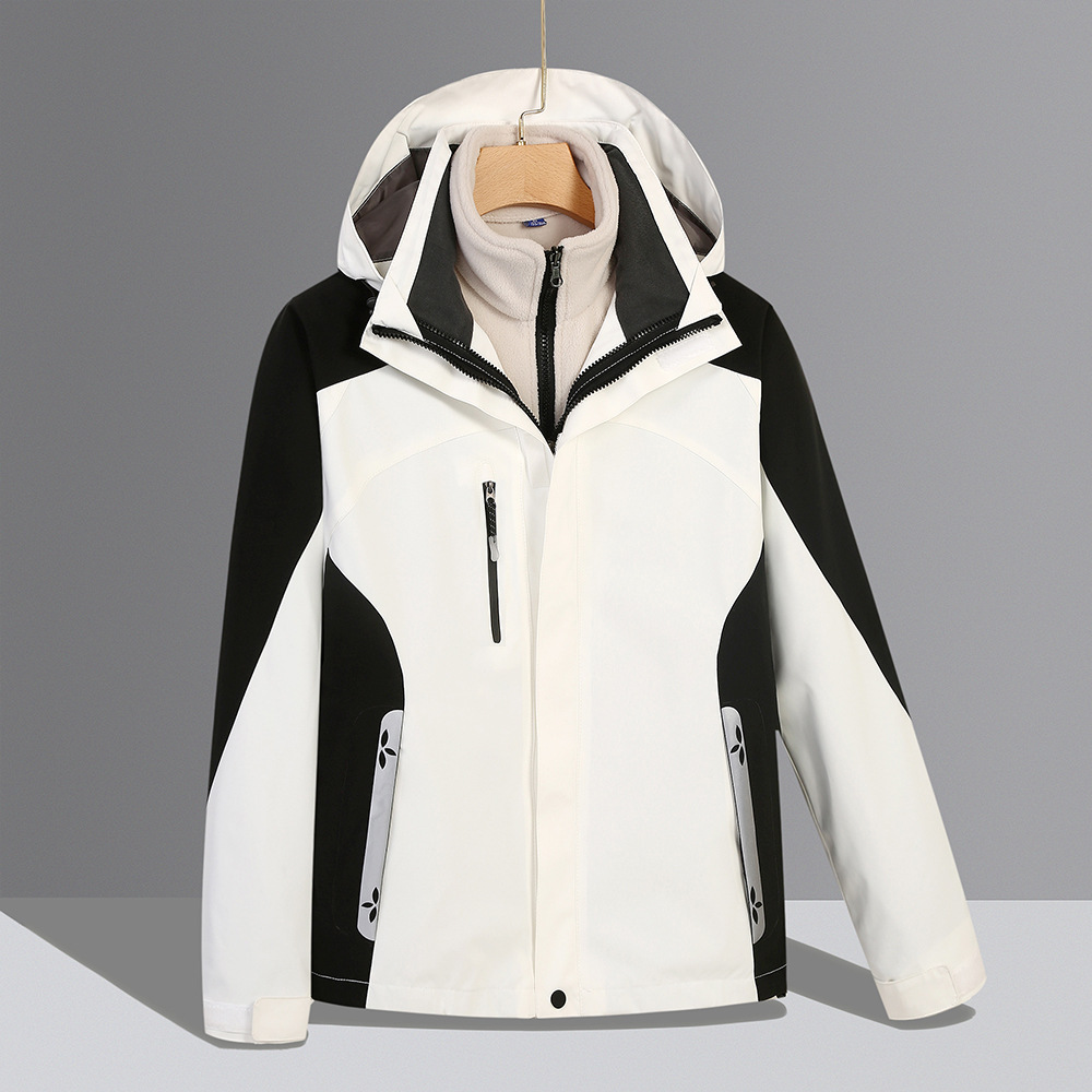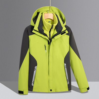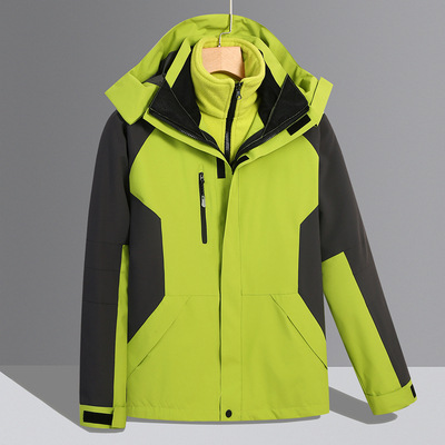 남성과 여성의 투피스 방풍 및 방수 스티치 대비 컬러 등산 세트 탈착식 라이너 엔터프라이즈 작업복